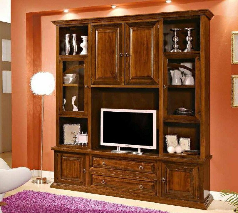 PARETE ATTREZZATA LEGNO ARTE POVERA TINTA NOCE E VARI COLORI 200X49X228 (424)