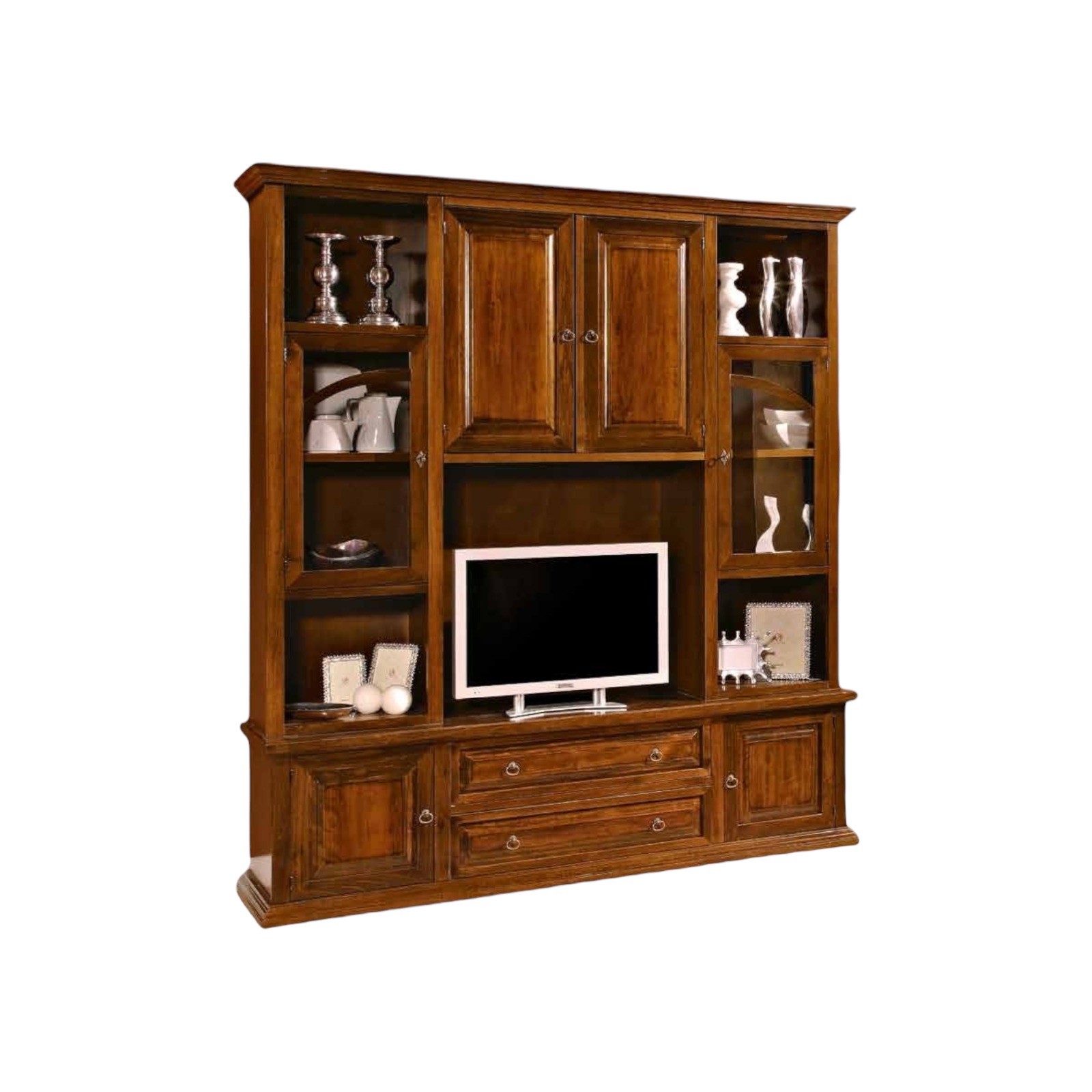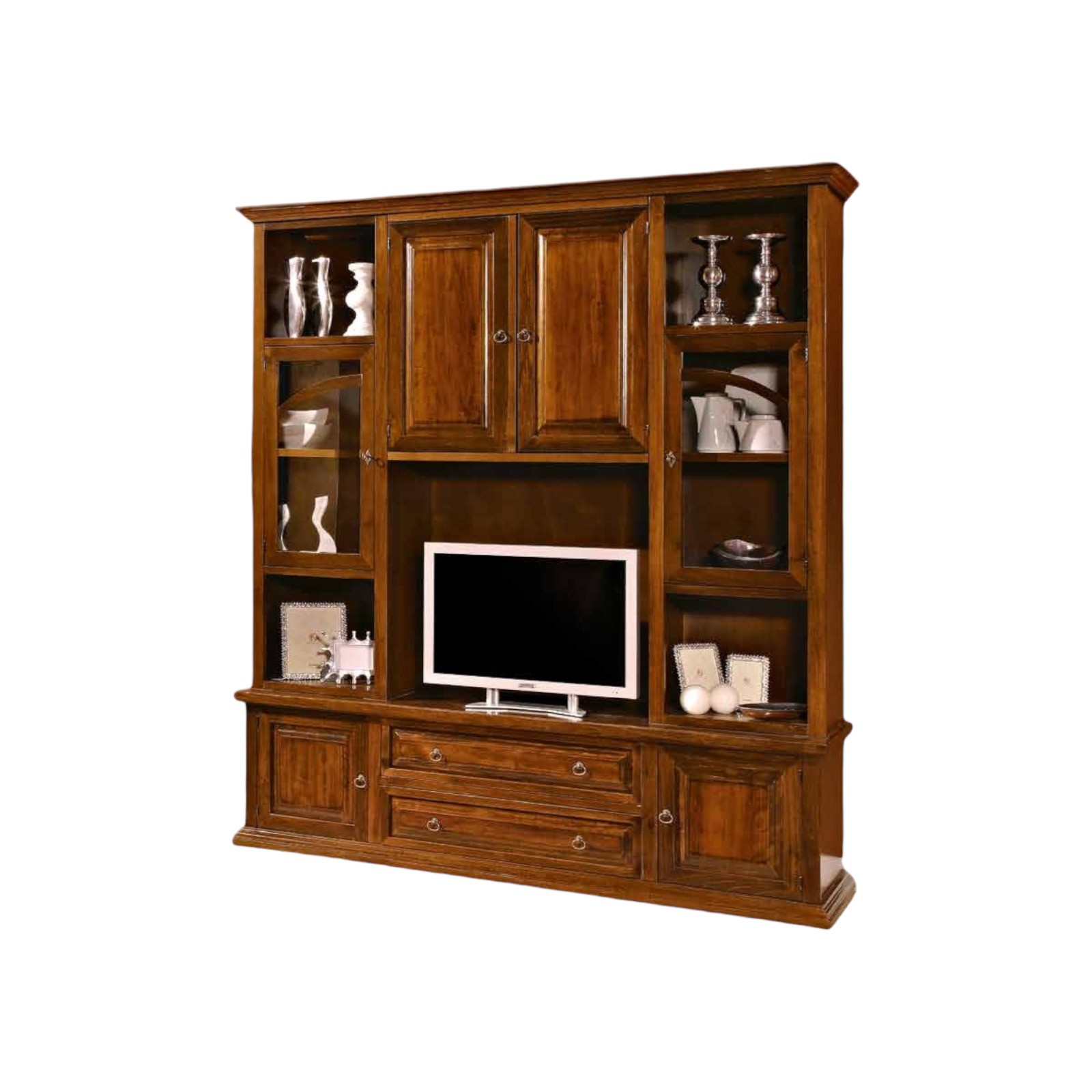 MOBILI 2G - PARETE ATTREZZATA LEGNO ARTE POVERA TINTA NOCE E VARI COLORI 200X49X228 (424) vista frontale