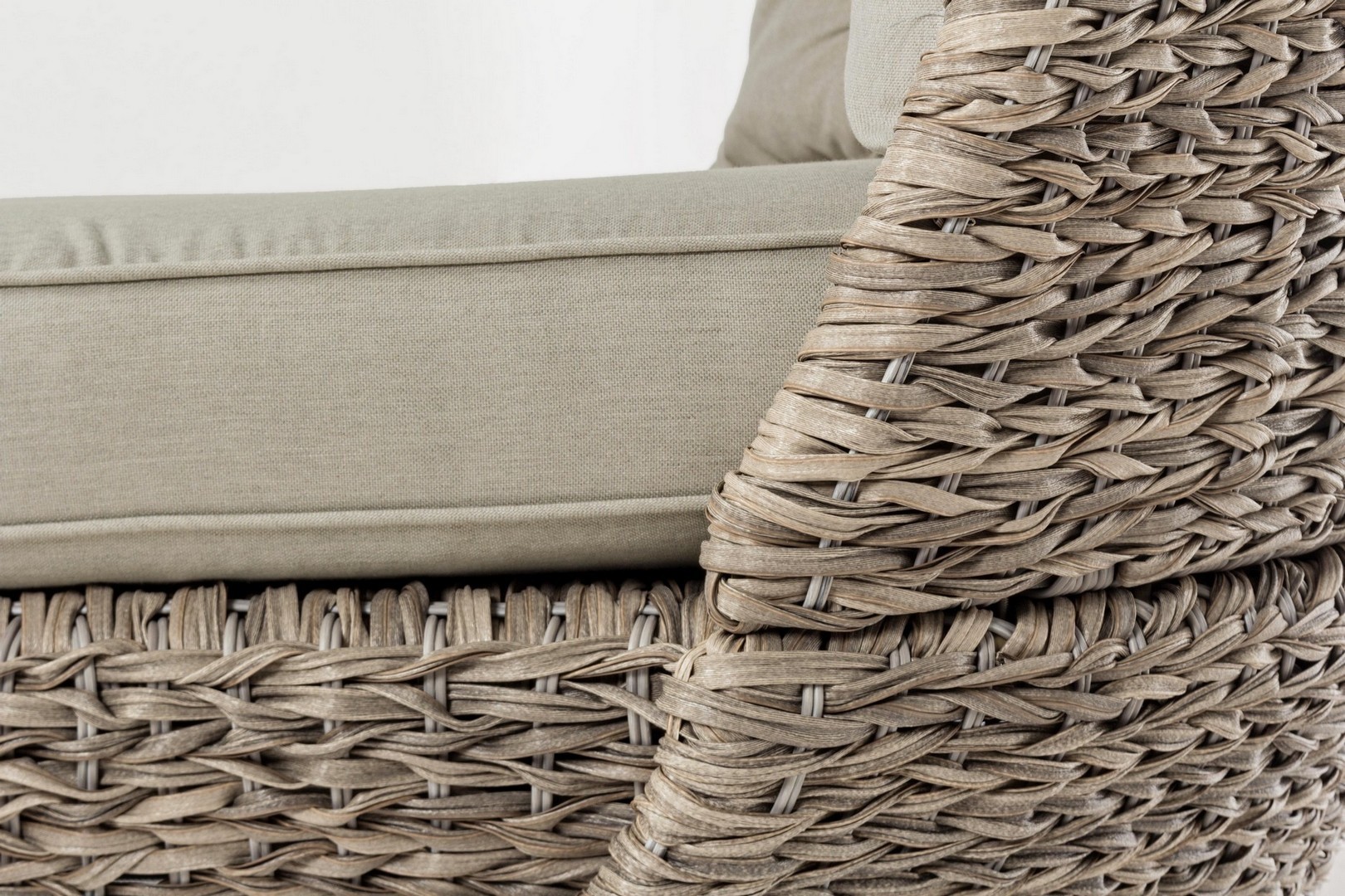 STRUTTURA IN ALLUMINIO, VERNICIATA A POLVERE (POLIESTERE). INTRECCIO IN FIBRA SINTETICA. CUSCINI SEDUTA SFODERABILI E CUSCINI SCHIENALE NON SFODERABILI IN TESSUTO IDROREPELLENTE POLIESTERE. IMBALLO SENZA CARTONE. DA ASSEMBLARE.
