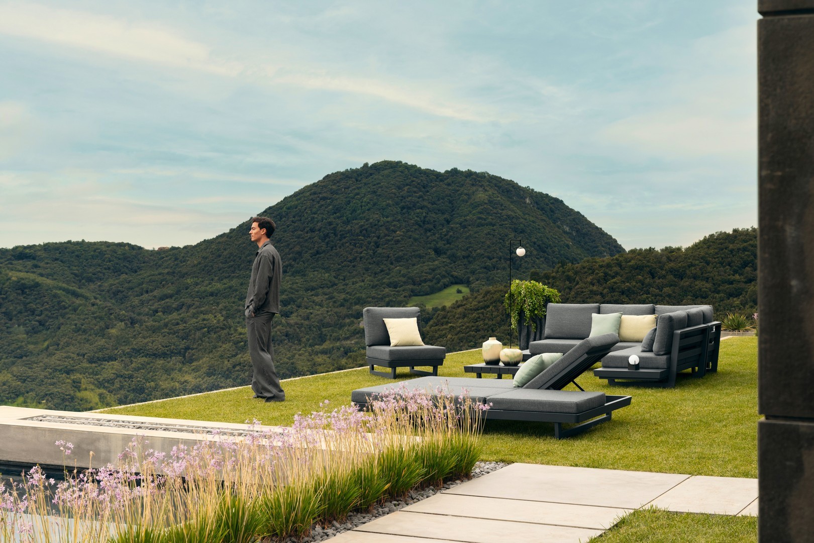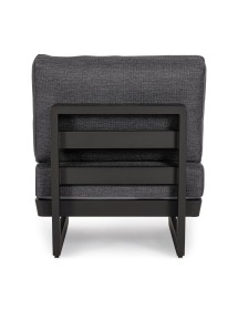 STRUTTURA IN ALLUMINIO VERNICIATO A POLVERE (POLIESTERE). CUSCINO SEDUTA E SCHIENALE SFODERABILE IN TESSUTO IDROREPELLENTE OLEFIN (100% POLIPROPILENE).