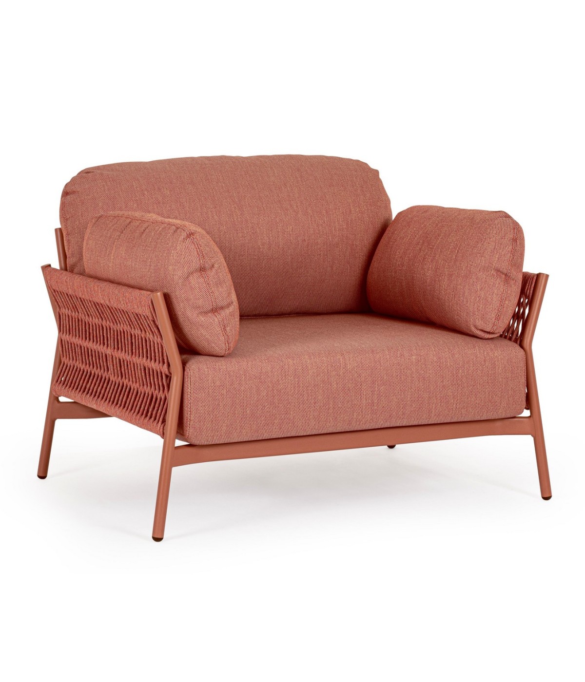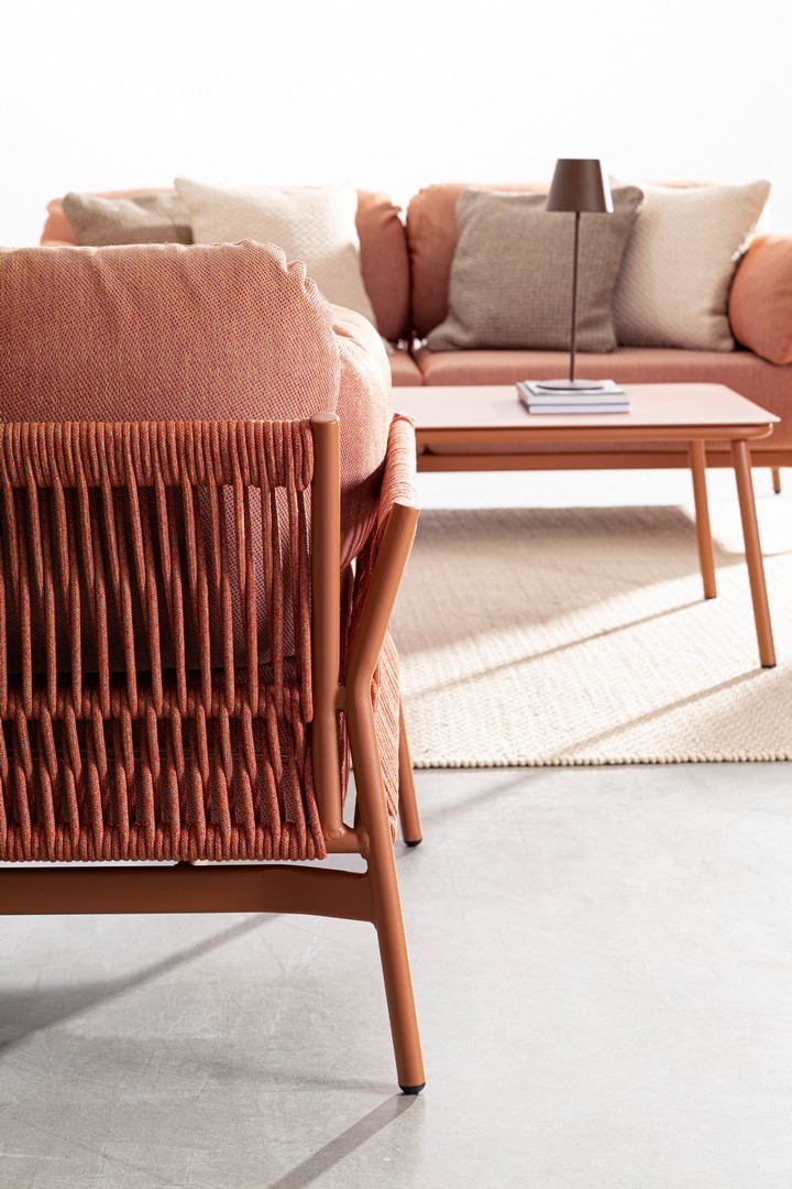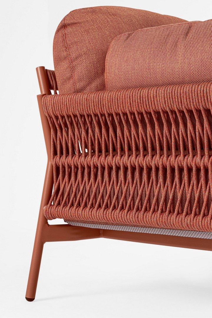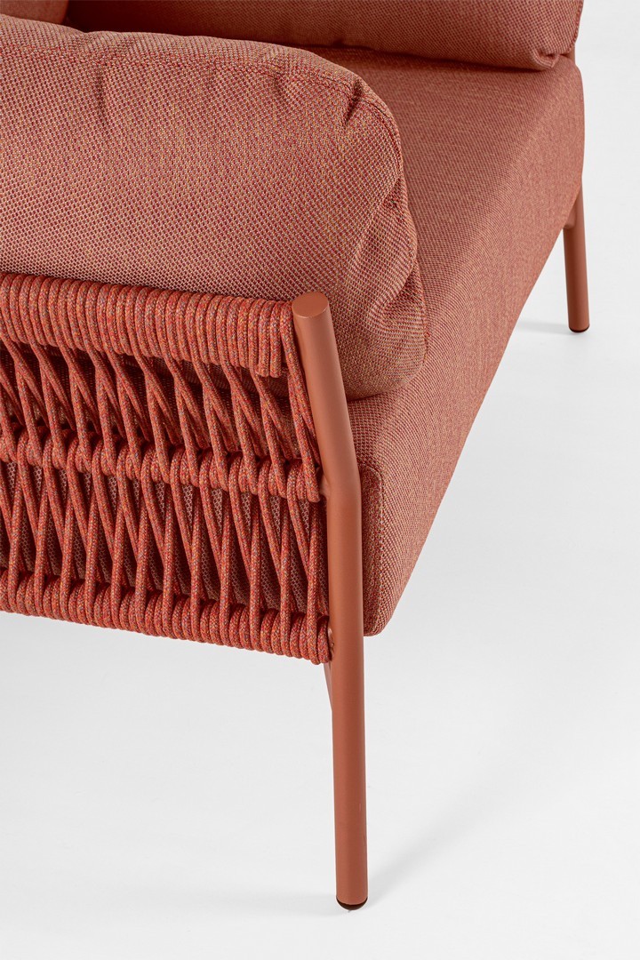 STRUTTURA IN ALLUMINIO VERNICIATO A POLVERE (POLIESTERE). INTRECCIO IN CORDA OLEFIN (100% POLIPROPILENE). CUSCINI SEDUTA E SCHIENALE SFODERABILI IN TESSUTO IDROREPELLENTE OLEFIN (100% POLIPROPILENE).