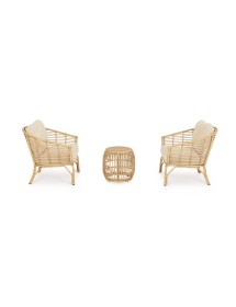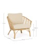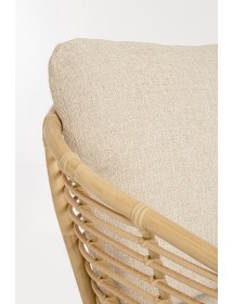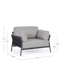 STRUTTURA IN ALLUMINIO VERNICIATO A POLVERE (POLIESTERE) CON EFFETTO RATTAN, INTRECCIO IN FIBRA SINTETICA (TONDO 10MM).CUSCINI SFODERABILI CON TESSUTO IDROREPELLENTE SUNPROOF OLEFIN (100%POLYPROPYLENE). IMBALLO SENZA CARTONE.