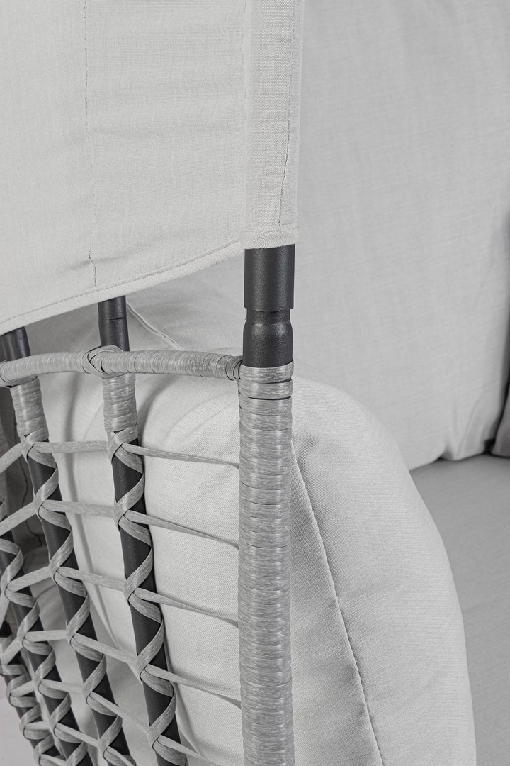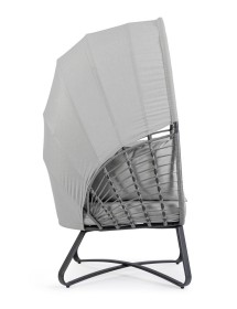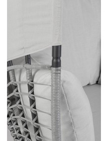STRUTTURA IN ACCIAIO (TRATTATO PER ESTERNO TRAMITE FOSFATAZIONE) VERNICIATO A POLVERE (POLIESTERE). INTRECCIO IN FIBRA SINTETICA. CUSCINO SEDUTA (SFODERABILE) E SCHIENALE CON TESSUTO IN POLIESTERE. PIEDINI REGOLABILI. DA ASSEMBLARE.