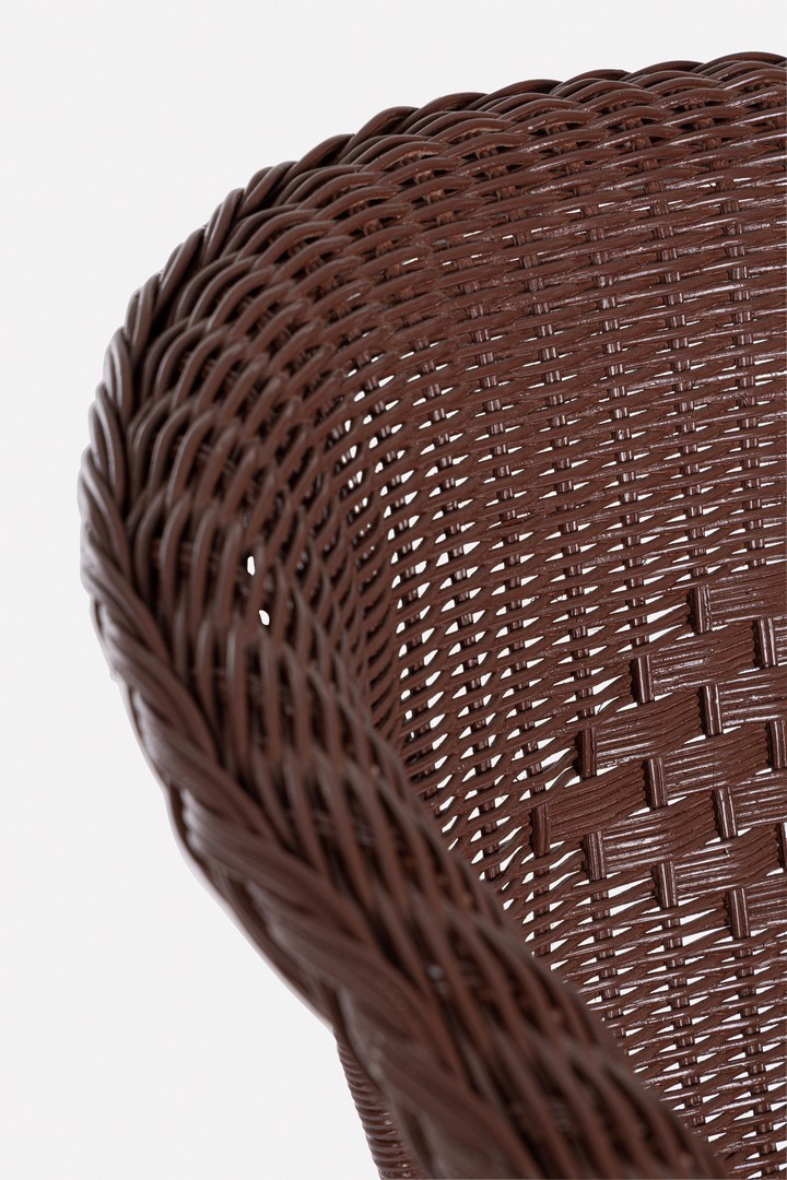 STRUTTURA IN RATTAN, INTRECCIO IN MIDOLLINO. RIFINITURA CON VERNICE MELAMINICA. SI RACCOMANDA DI NON ESPORRE ALLA LUCE DIRETTA DEL SOLE ED ALLE INTEMPERIE. IMPILABILE. IMBALLO SENZA CARTONE.