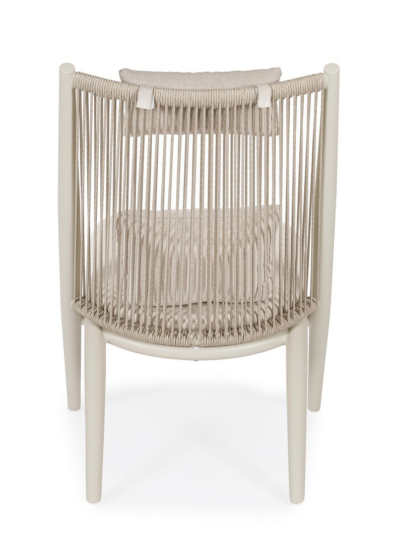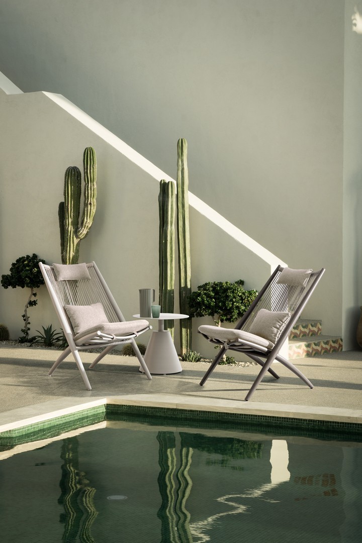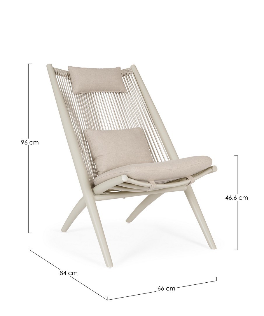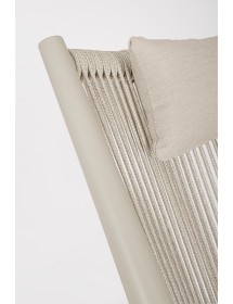 STRUTTURA IN ALLUMINIO VERNICIATO A POLVERE (POLIESTERE), INTRECCIO CON CORDE IN POLIESTERE (IDROREPELLENTI, RESISTENTI RAGGI UV). CUSCINI SFODERABILI IN TESSUTO IDROREPELLENTE ACRILICO (280GR/M2). DA ASSEMBLARE.