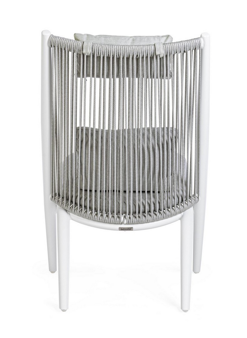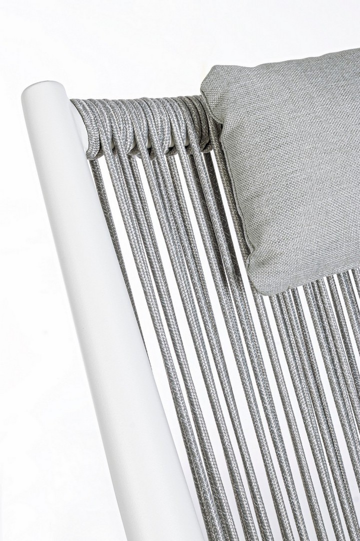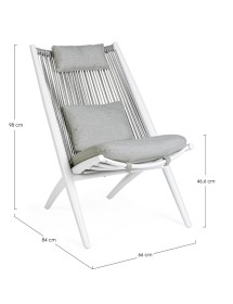 STRUTTURA IN ALLUMINIO VERNICIATO A POLVERE (POLIESTERE), INTRECCIO CON CORDE IN POLIESTERE (IDROREPELLENTI, RESISTENTI RAGGI UV). CUSCINI SFODERABILI IN TESSUTO IDROREPELLENTE POLIESTERE (280GR/M2). DA ASSEMBLARE.