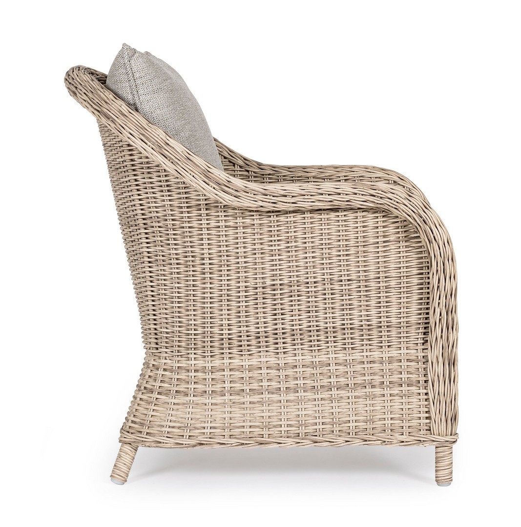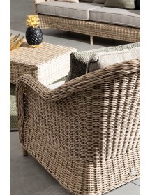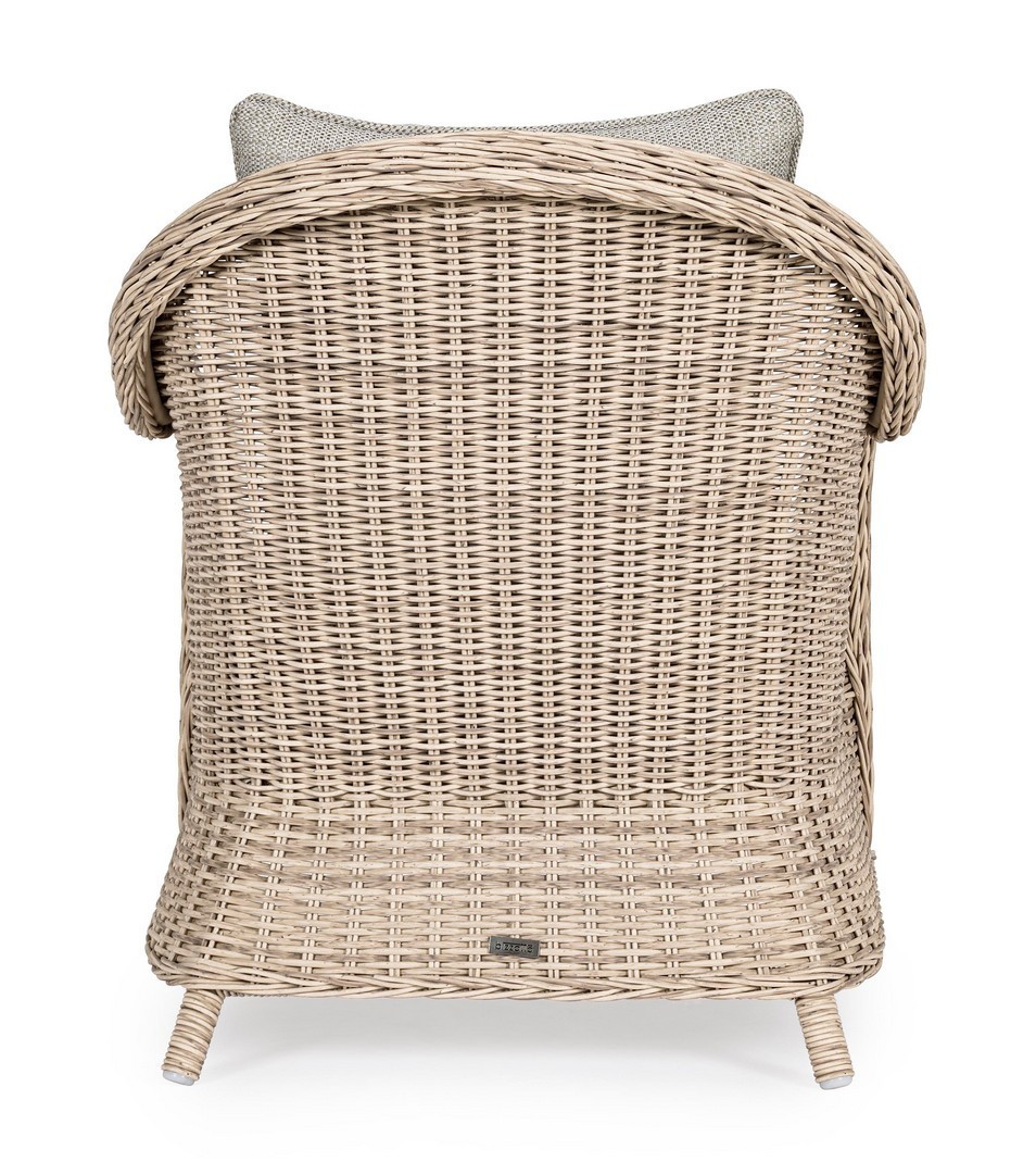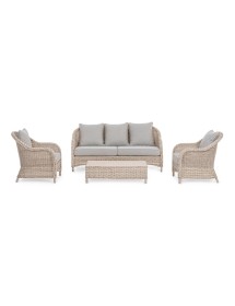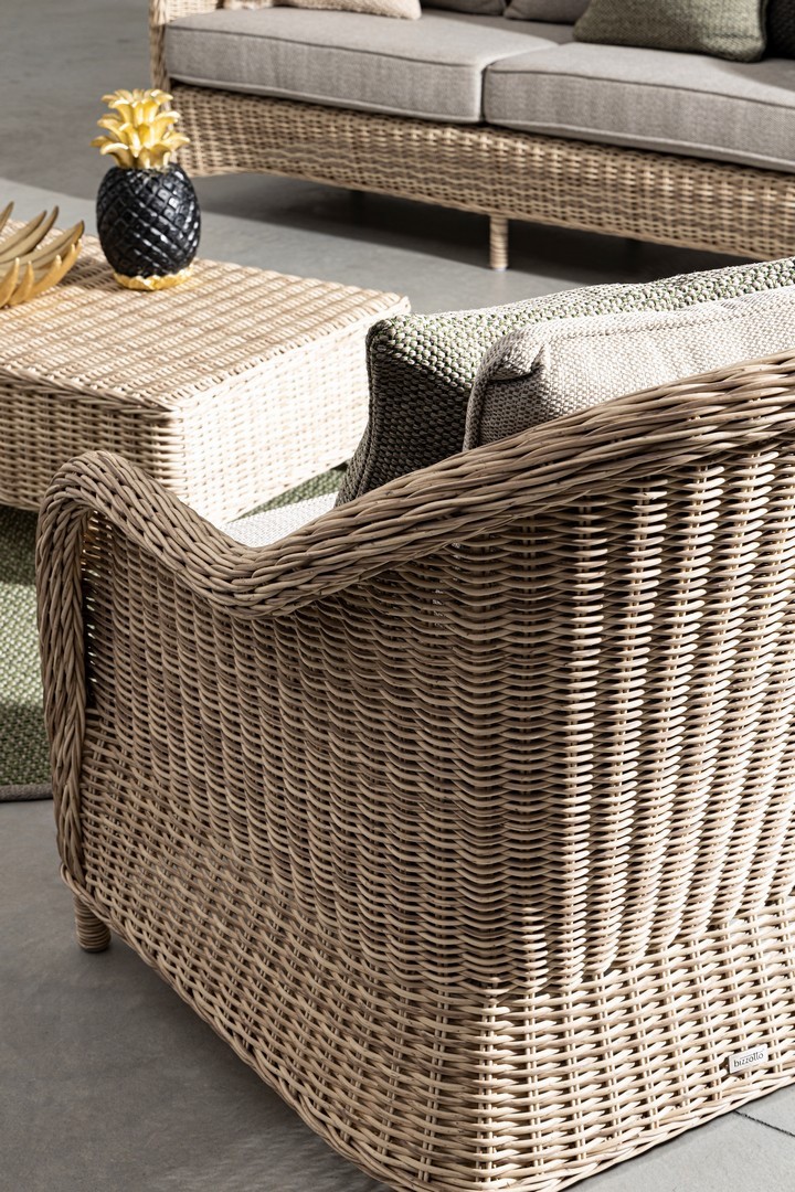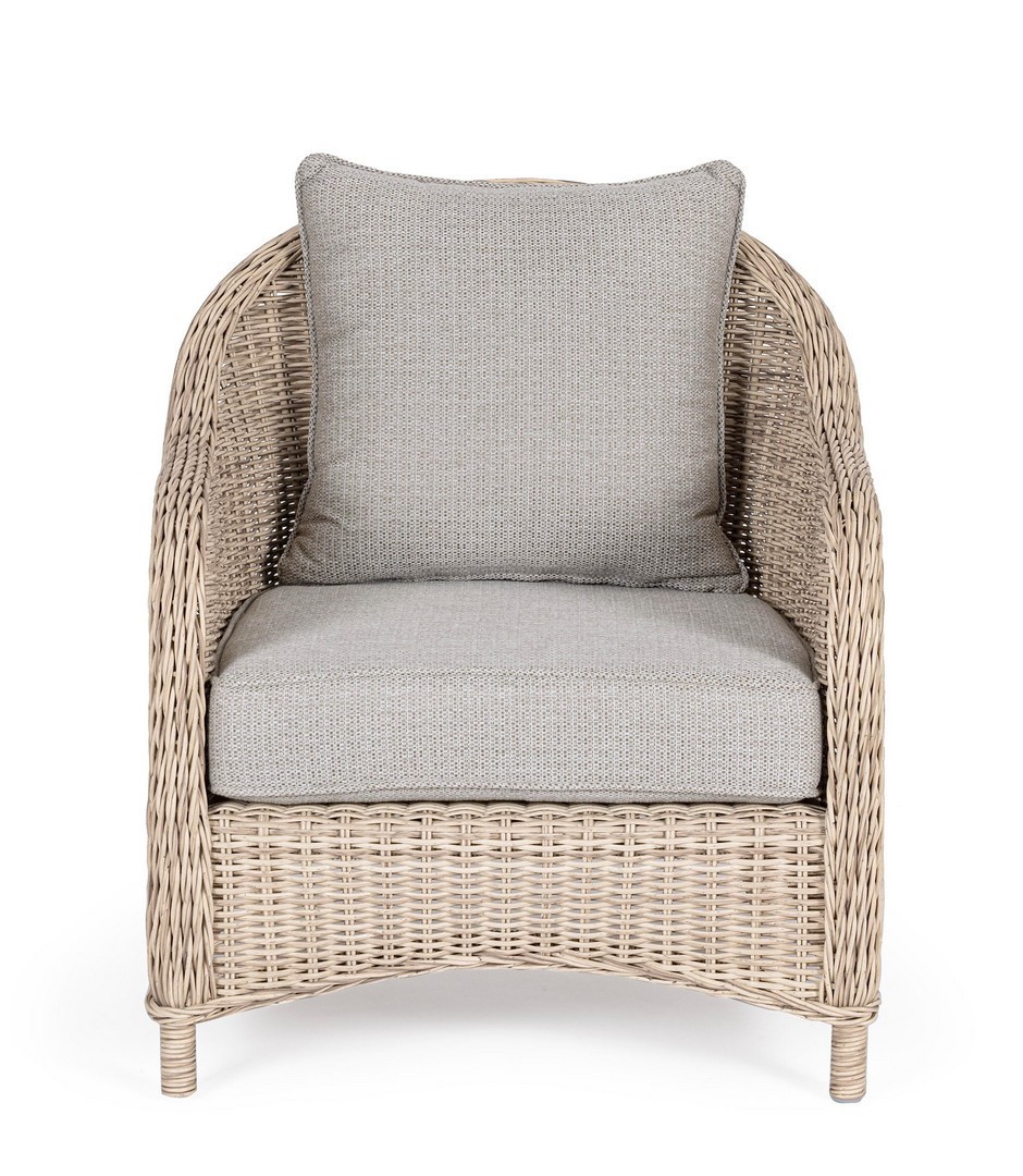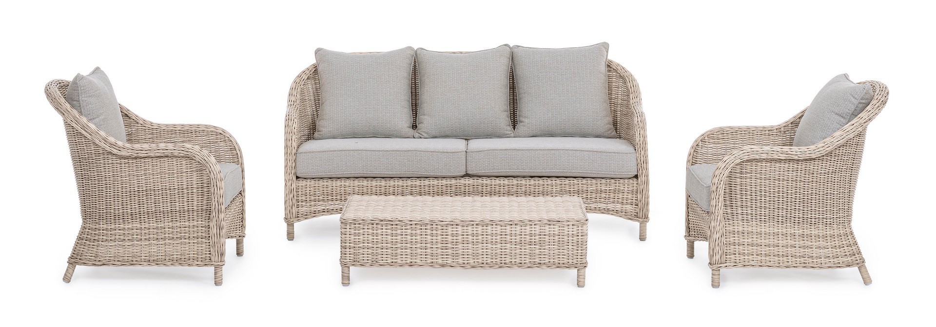 STRUTTURA IN ALLUMINIO VERNICIATO A POLVERE (POLIESTERE), INTRECCIO IN FIBRA SINTETICA (TONDO 5, 3MM).CUSCINI SFODERABILI CON TESSUTO IDROREPELLENTE SUNPROOF OLEFIN (100%POLYPROPYLENE). IMBALLO SENZA CARTONE.