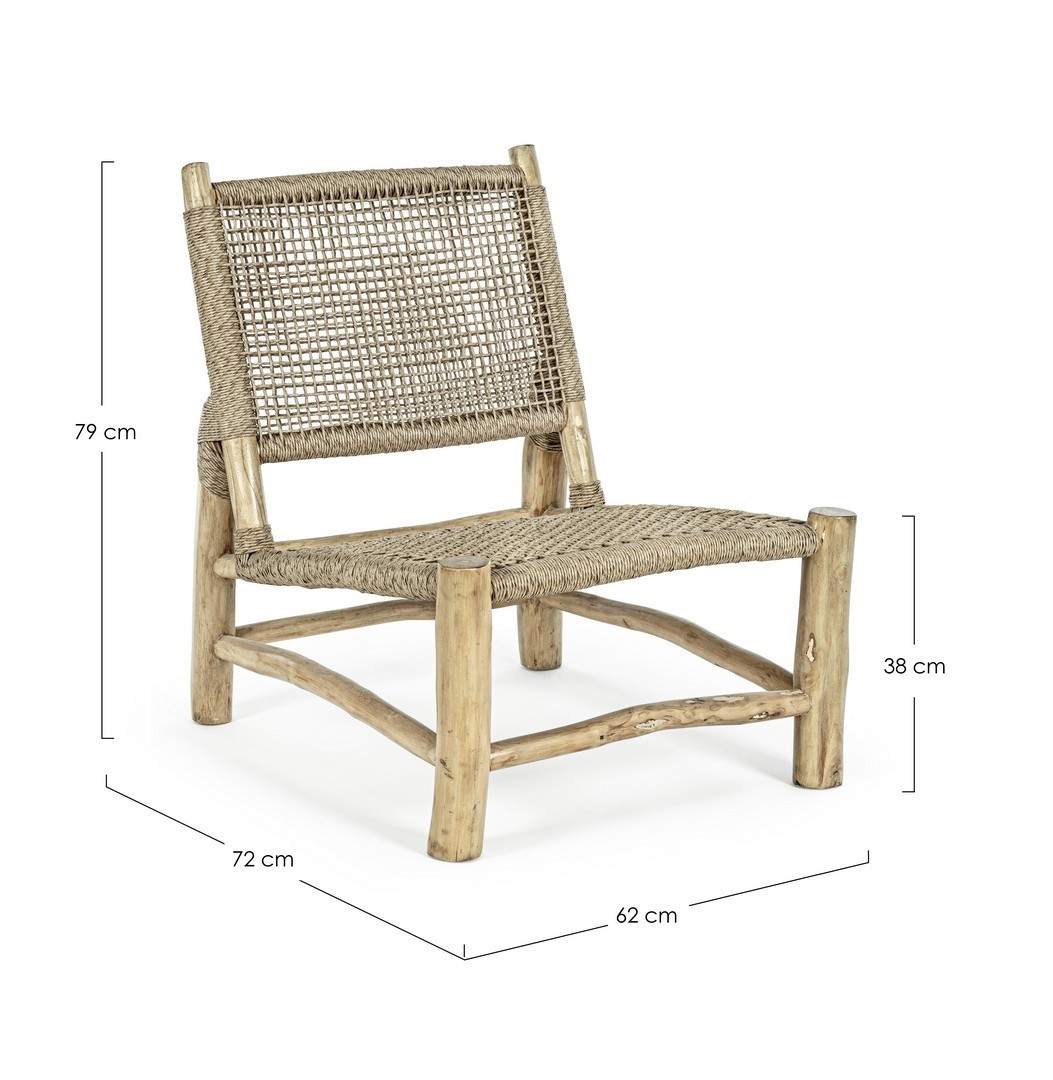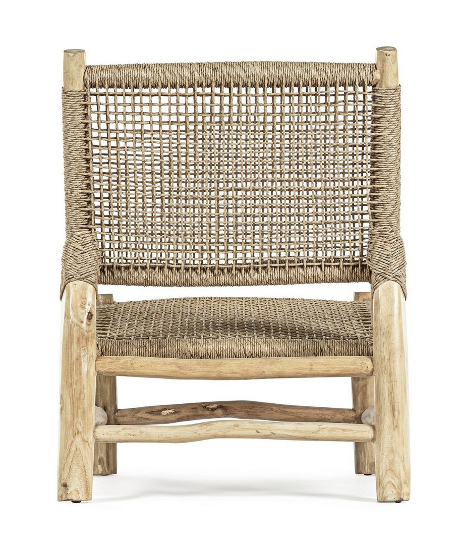 STRUTTURA IN RAMI DI TEAK, SEDUTA E SCHIENALE CON INTRECCIO IN FIBRA SINTETICA (VIRO). SI RACCOMANDA DI NON ESPORRE L'ARTICOLO ALLA LUCE DIRETTA DEL SOLE ED ALLE INTEMPERIE. LE FORME ORIGINALI CREATE DAL LEGNO SONO SOLO INDICATIVE, TUTTI I PRODOTTI SARANNO DIVERSI L'UNO DALL'ALTRO. FESSURAZIONI E PICCOLE CREPE NELLA STRUTTURA SONO DA RITENERSI CONDIZIONI NATURALI DEL PRODOTTO. IMBALLO SENZA CARTONE.