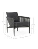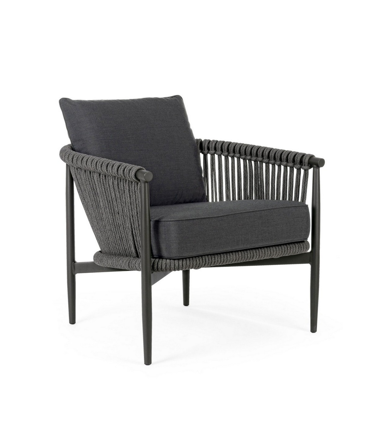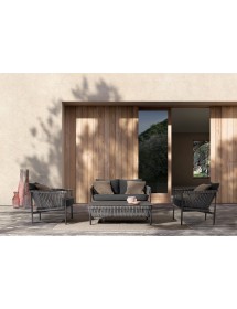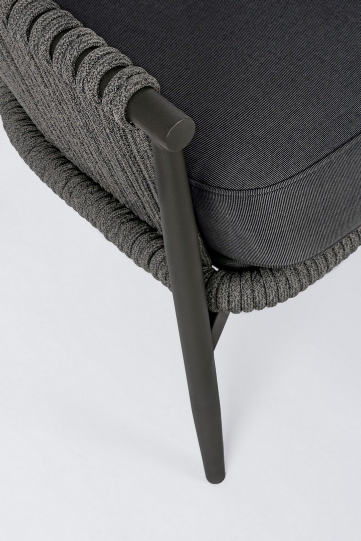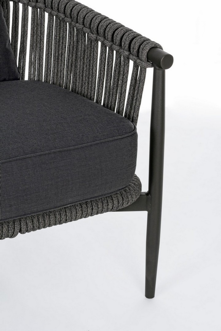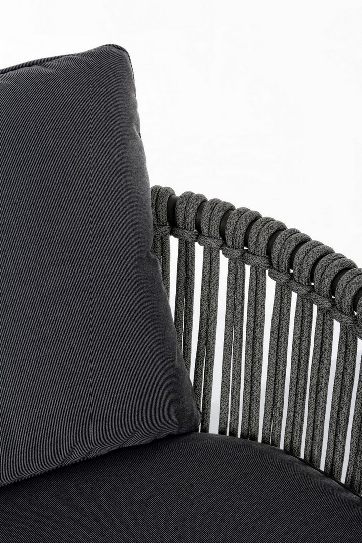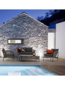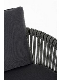 STRUTTURA IN ALLUMINIO VERNICIATO A POLVERE (POLIESTERE). INTRECCIO PER ESTERNO IN CORDA (POLIPROPILENE), IDROREPELLENTE E RESISTENTE AI RAGGI UV. CUSCINI SFODERABILI CON TESSUTO SUNBRELLA (100% ACRILICO), IDROREPELLENTI E RESISTENTI AI RAGGI UV. IMBOTTITURA PER ESTERNO QUICK DRY FOAM (ANTIUMIDITA').