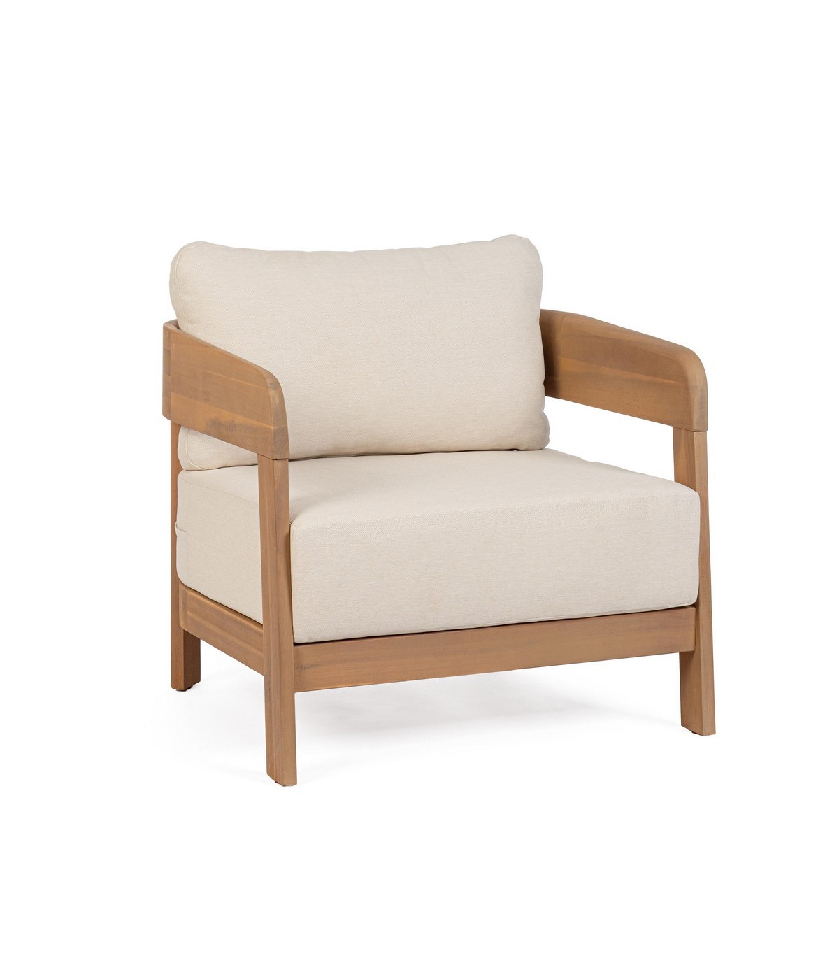 LEGNO DI ACACIA FSC 100%, FINITURA A OLIO (EFFETTO TEAK). CUSCINI SFODERABILI IN TESSUTO IDROREPELLENTE OLEFIN (100% POLIPROPILENE).NON VENDIBILE IN SPAGNA E POLONIA.
