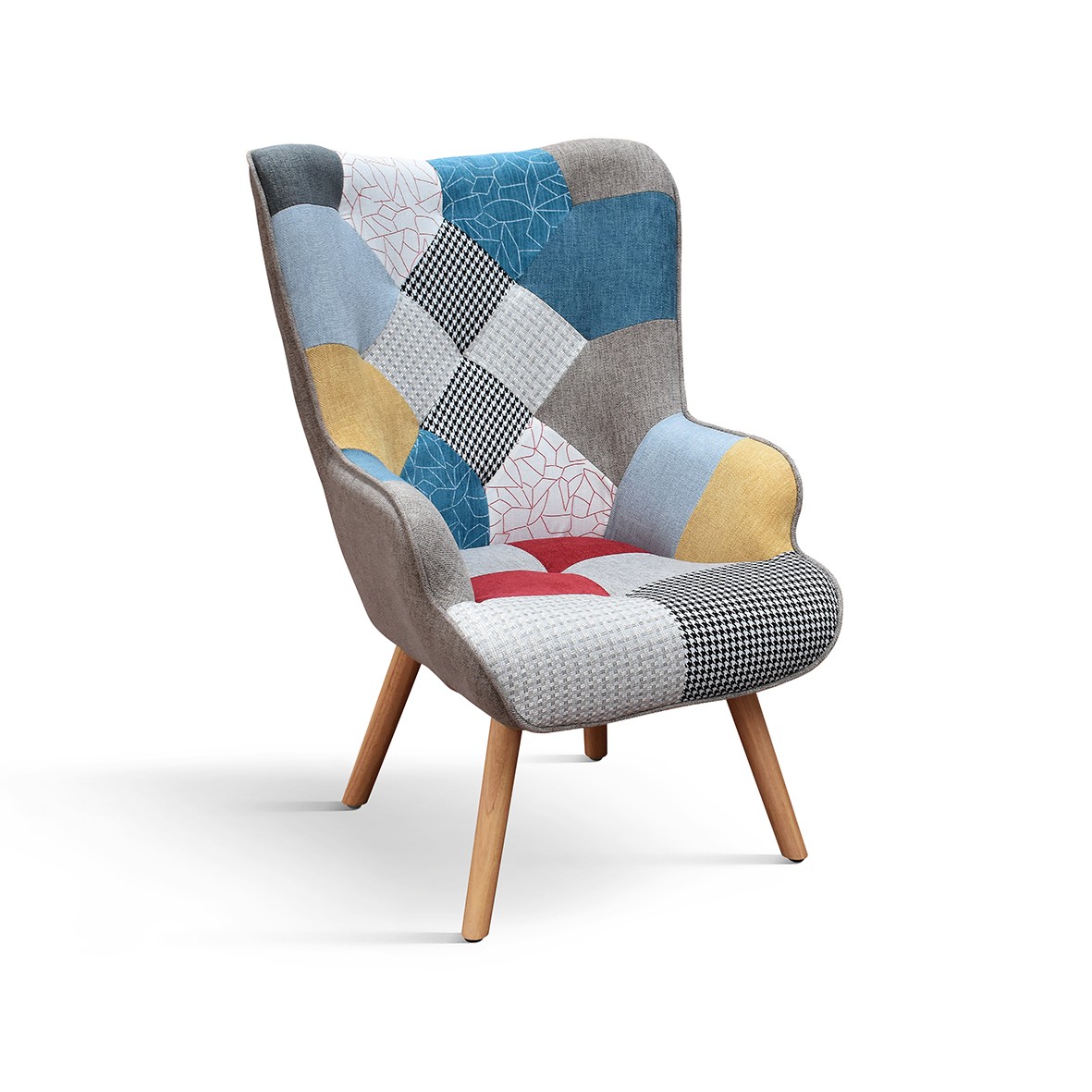 Poltrona imbottita in tessuto patchwork dalle linee sagomate ideale per chi ama arredare con stile la casa e allo stesso tempo versatile da posizionare in qualsiasi stanza .Poltrona caratterizzata da un pouf poggiapiedi che aggiunge una nota di stile all'articolo, imbottita per garantire un' esperienza di seduta confortevole e non vorrai rilassarti da nessun' altra parte alla fine di una giornata faticosa. Complemento di arredo adatto in soggiorno, nella stanza da letto o nella camera degli ospiti.