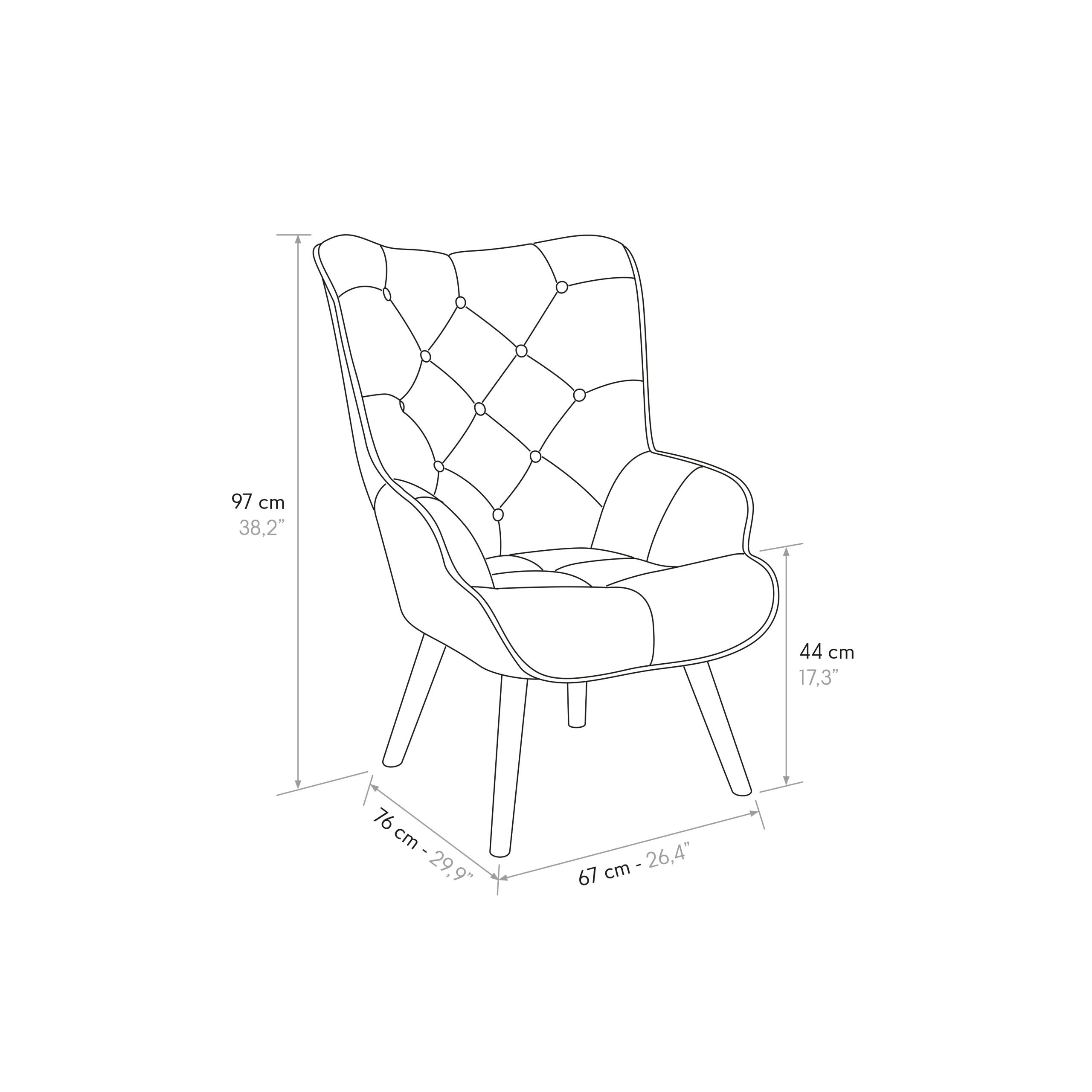 Misura poltrona: Larghezza 67 cm - profondità 76 cm - Altezza 97 cm - Altezza seduta 44 cm