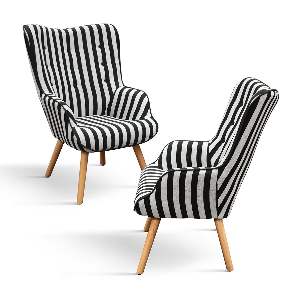 Poltrona imbottita in tessuto con righe dalle linee sagomate ideale per chi ama arredare con stile la casa e allo stesso tempo versatile da posizionare in qualsiasi stanza .Poltrona caratterizzata da un pouf poggiapiedi che aggiunge una nota di stile all'articolo, imbottita per garantire un' esperienza di seduta confortevole e non vorrai rilassarti da nessun' altra parte alla fine di una giornata faticosa. Complemento di arredo adatto in soggiorno, nella stanza da letto o nella camera degli ospiti.