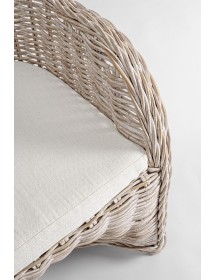 STRUTTURA IN RATTAN, INTRECCIO IN KUBU. FINITURA A BASE DI NITROCELLULOSA. CUSCINO SFODERABILE CON TESSUTO IN COTONE. SI RACCOMANDA DI NON ESPORRE IL MOBILE ALLA LUCE DIRETTA DEL SOLE ED ALLE INTEMPERIE. IMBALLO SENZA CARTONE.