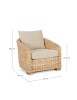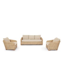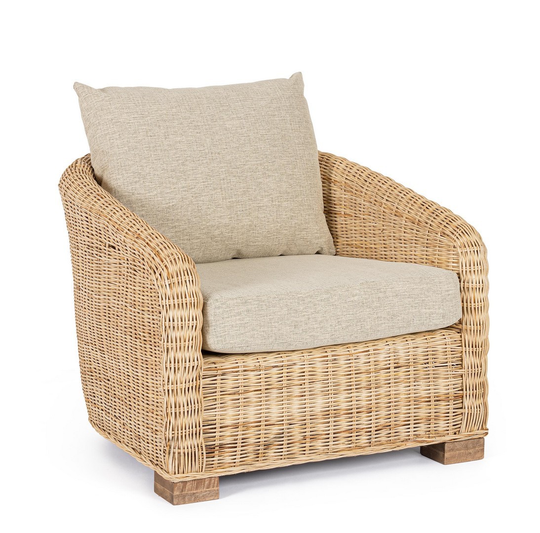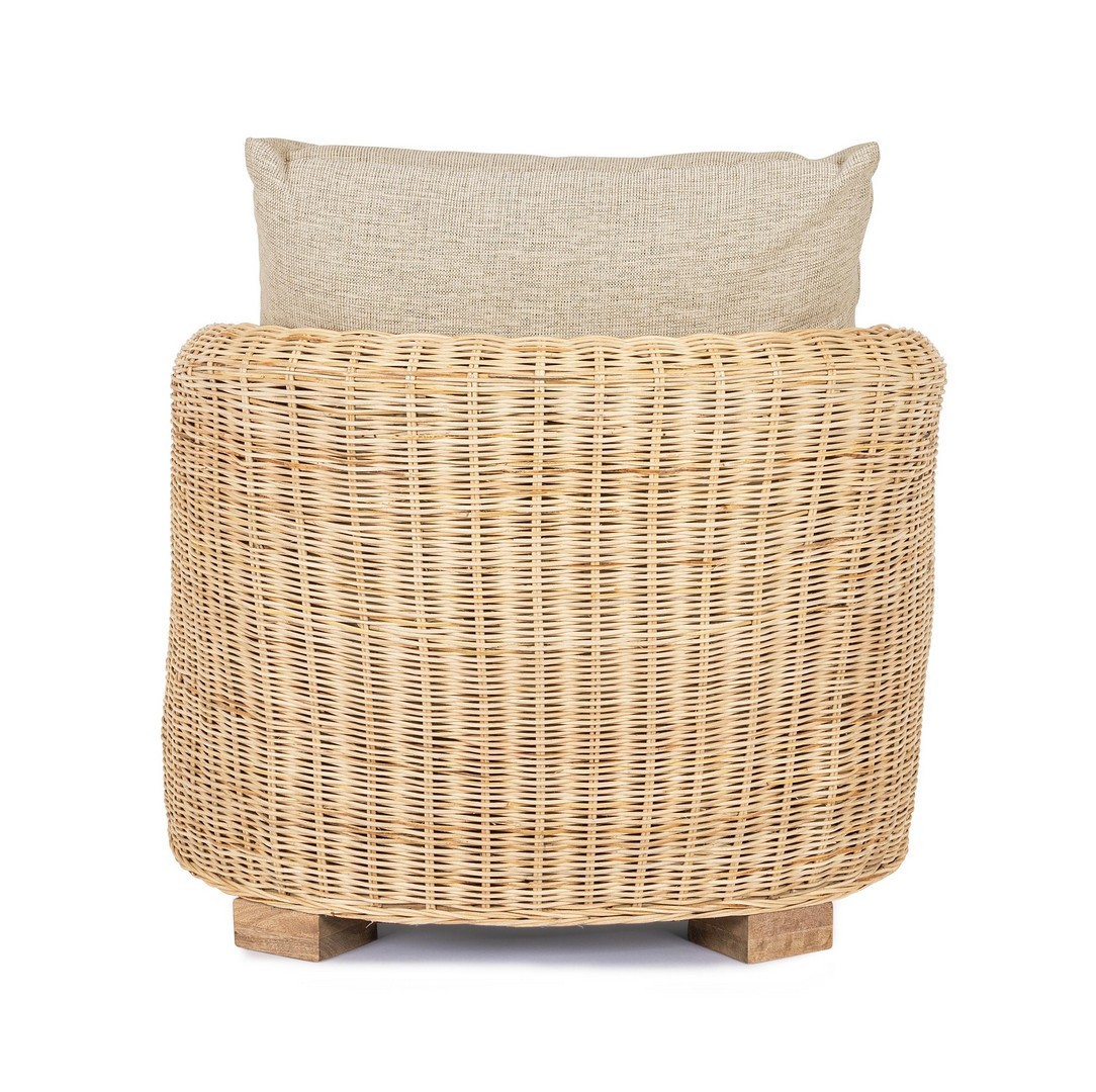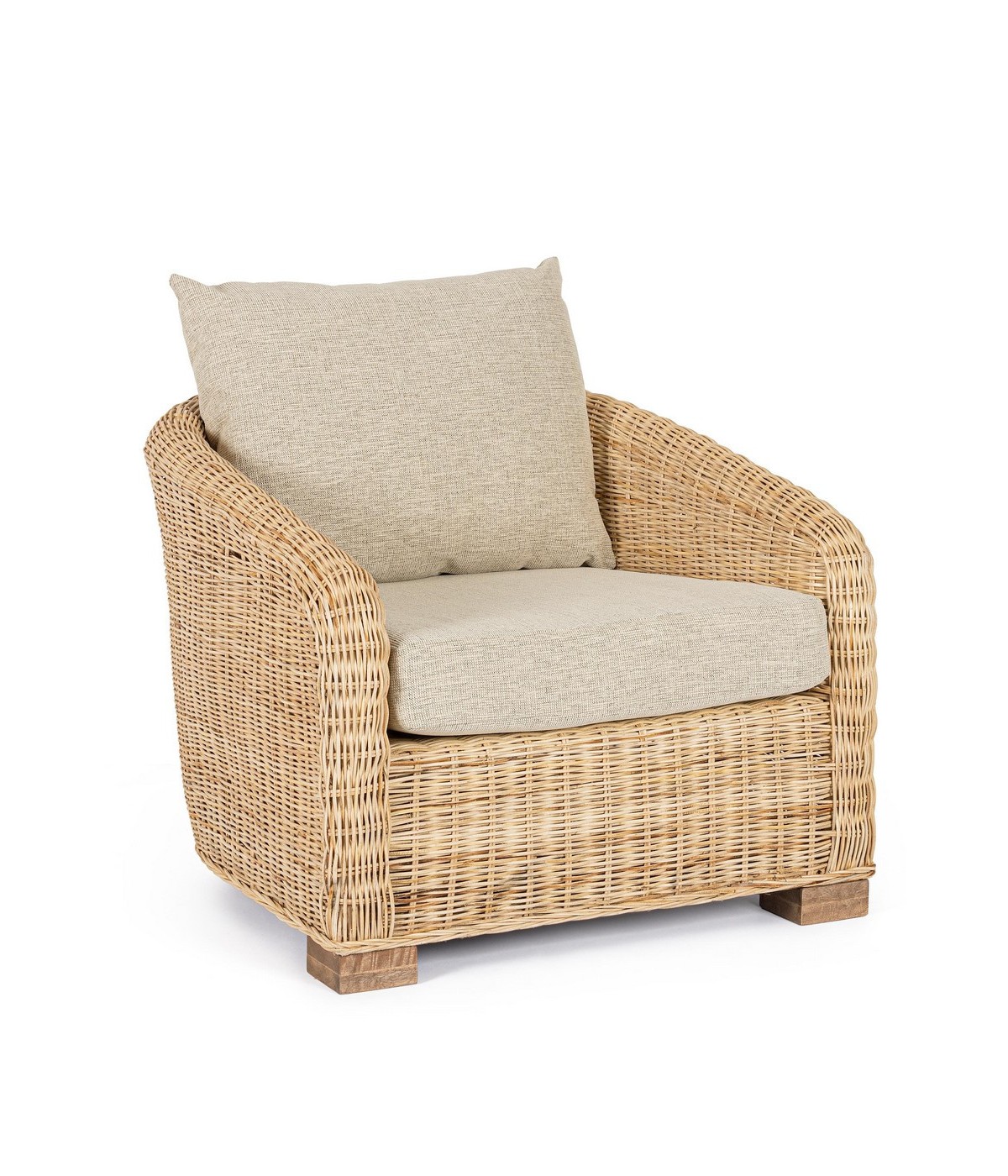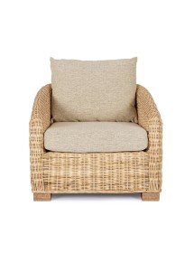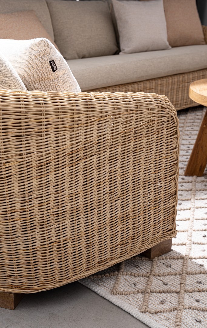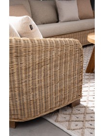 STRUTTURA ED INTRECCIO IN RATTAN, FINITURA NATURALE A BASE DI NITROCELLULOSA. CUSCINI SFODERABILI CON TESSUTO 100% POLIESTERE. PIEDINI IN LEGNO DI MANGO. SI RACCOMANDA DI NON ESPORRE IL MOBILE ALLA LUCE DIRETTA DEL SOLE E ALLE INTEMPERIE. IMBALLO SENZA CARTONE.