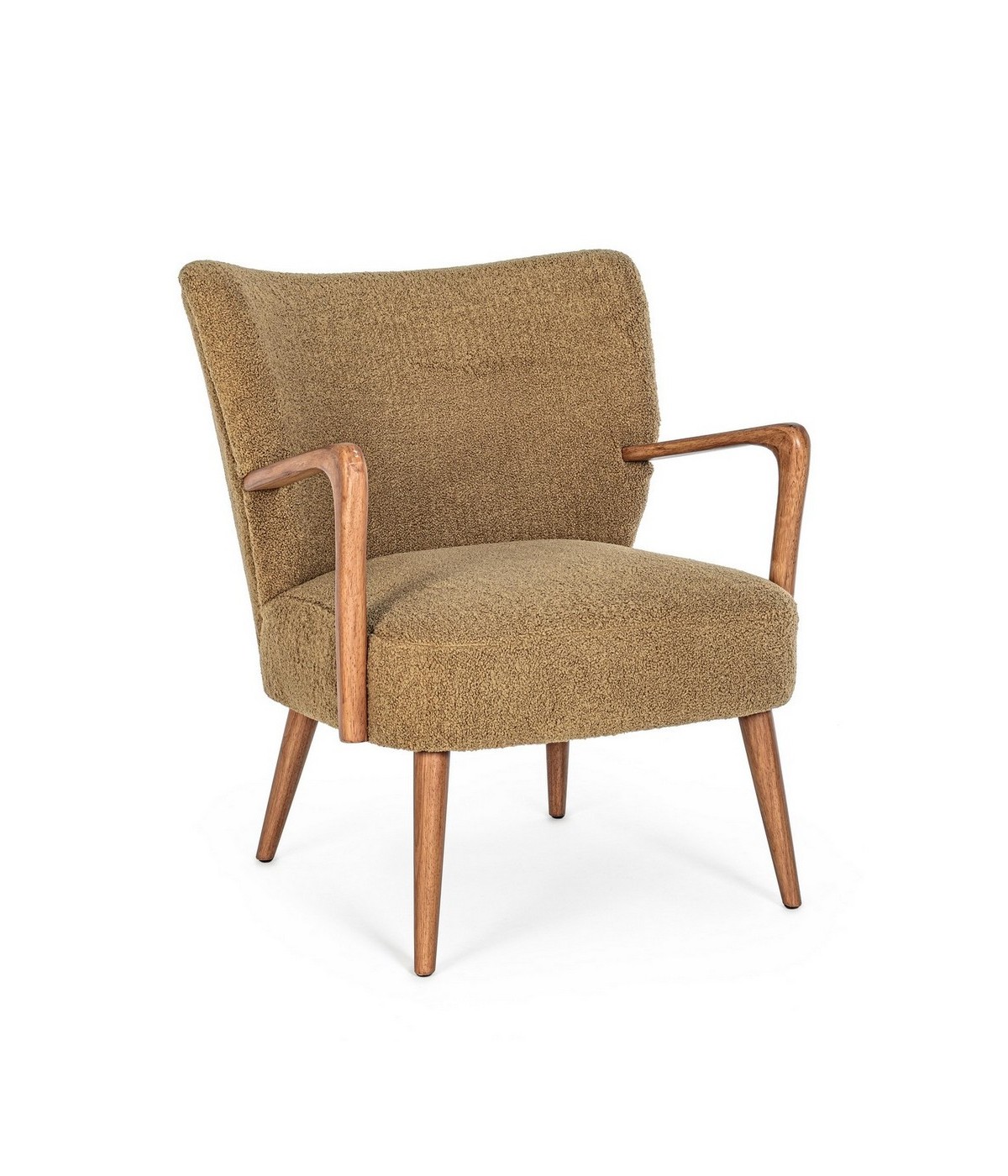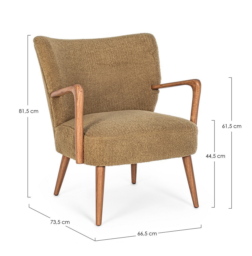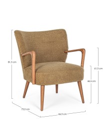 STRUTTURA IN LEGNO DI PINO E COMPENSATO. GAMBE E BRACCIOLI IN RUBBERWOOD. RIVESTIMENTO IN POLIESTERE EFFETTO LANA. DENSITA' IMBOTTITURA IN SCHIUMA POLIURETANICA 24 KG/M3. NON SFODERABILE. GAMBE DA ASSEMBLARE.