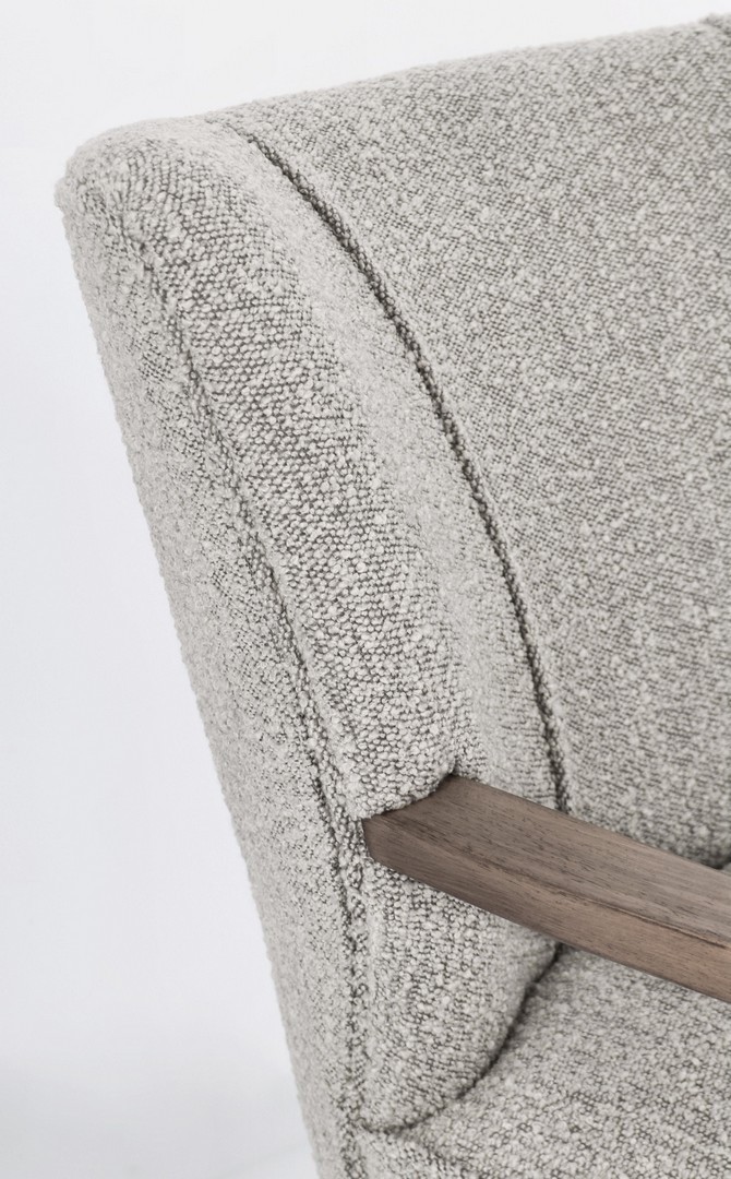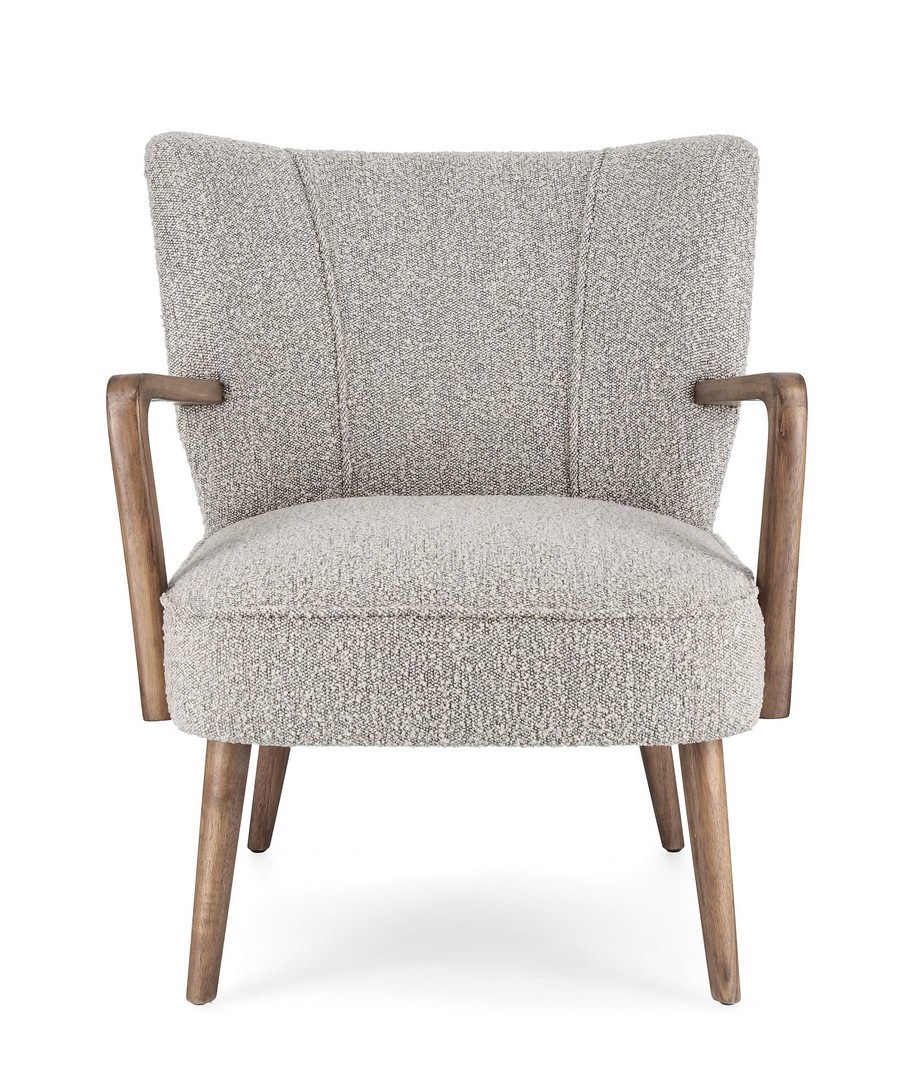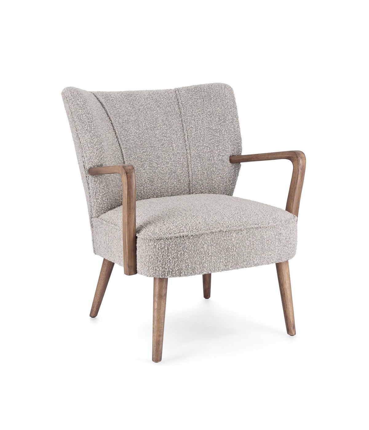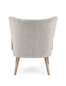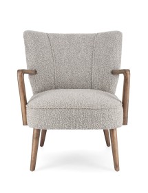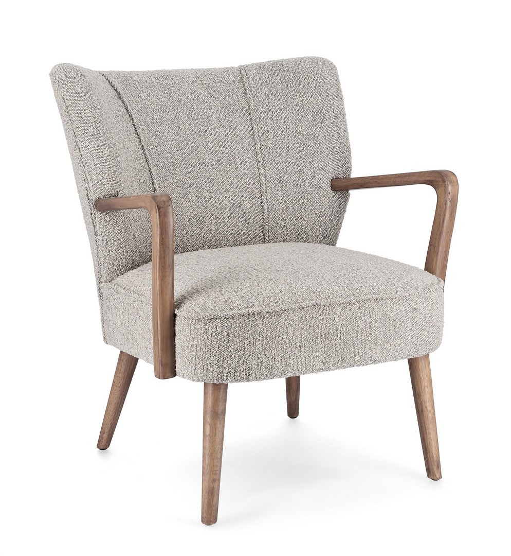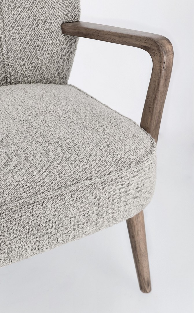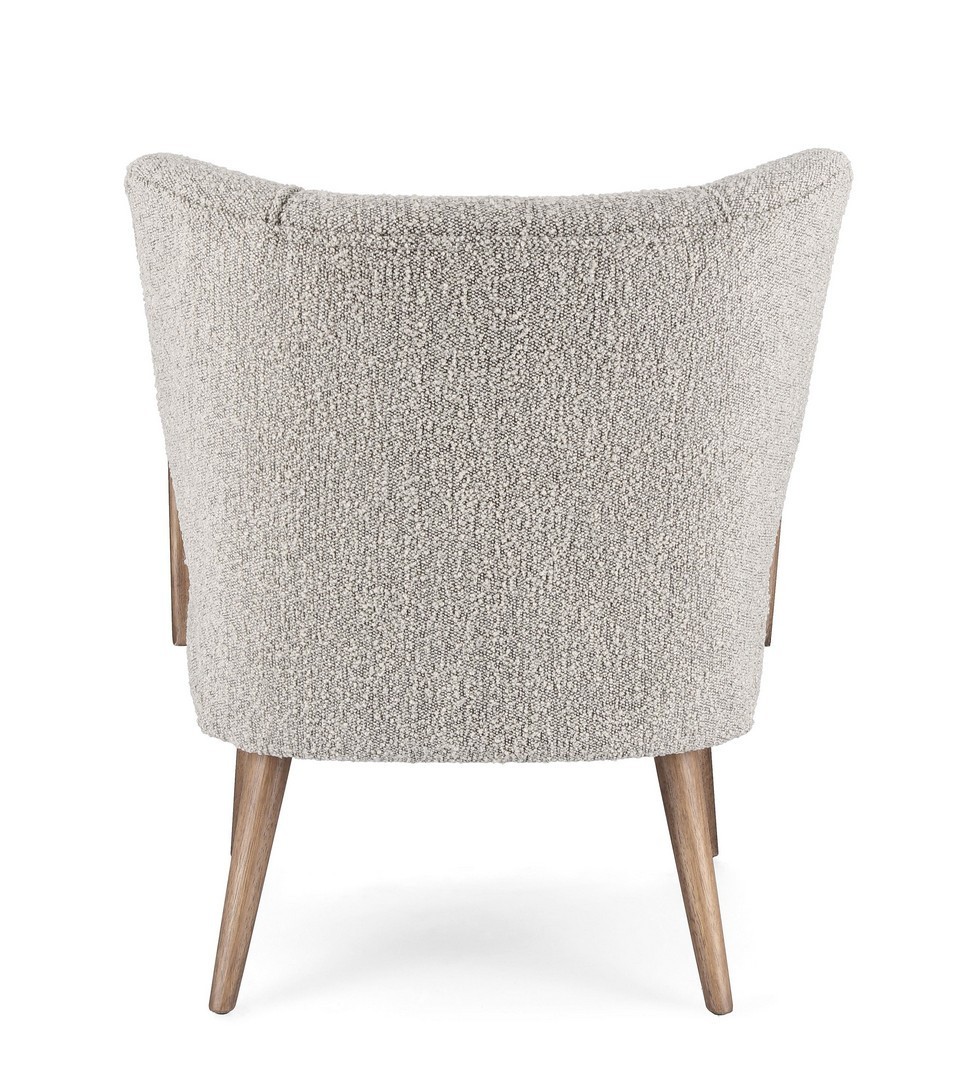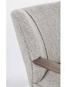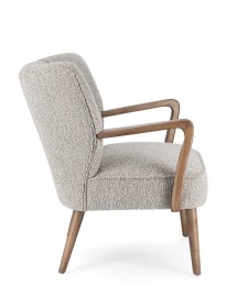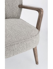 STRUTTURA IN LEGNO DI PINO E COMPENSATO. GAMBE E BRACCIOLI IN RUBBERWOOD. RIVESTIMENTO IN POLIESTERE EFFETTO BOUCLE'. DENSITA' IMBOTTITURA IN SCHIUMA POLIURETANICA 24 KG/M3. NON SFODERABILE. GAMBE DA ASSEMBLARE.