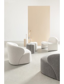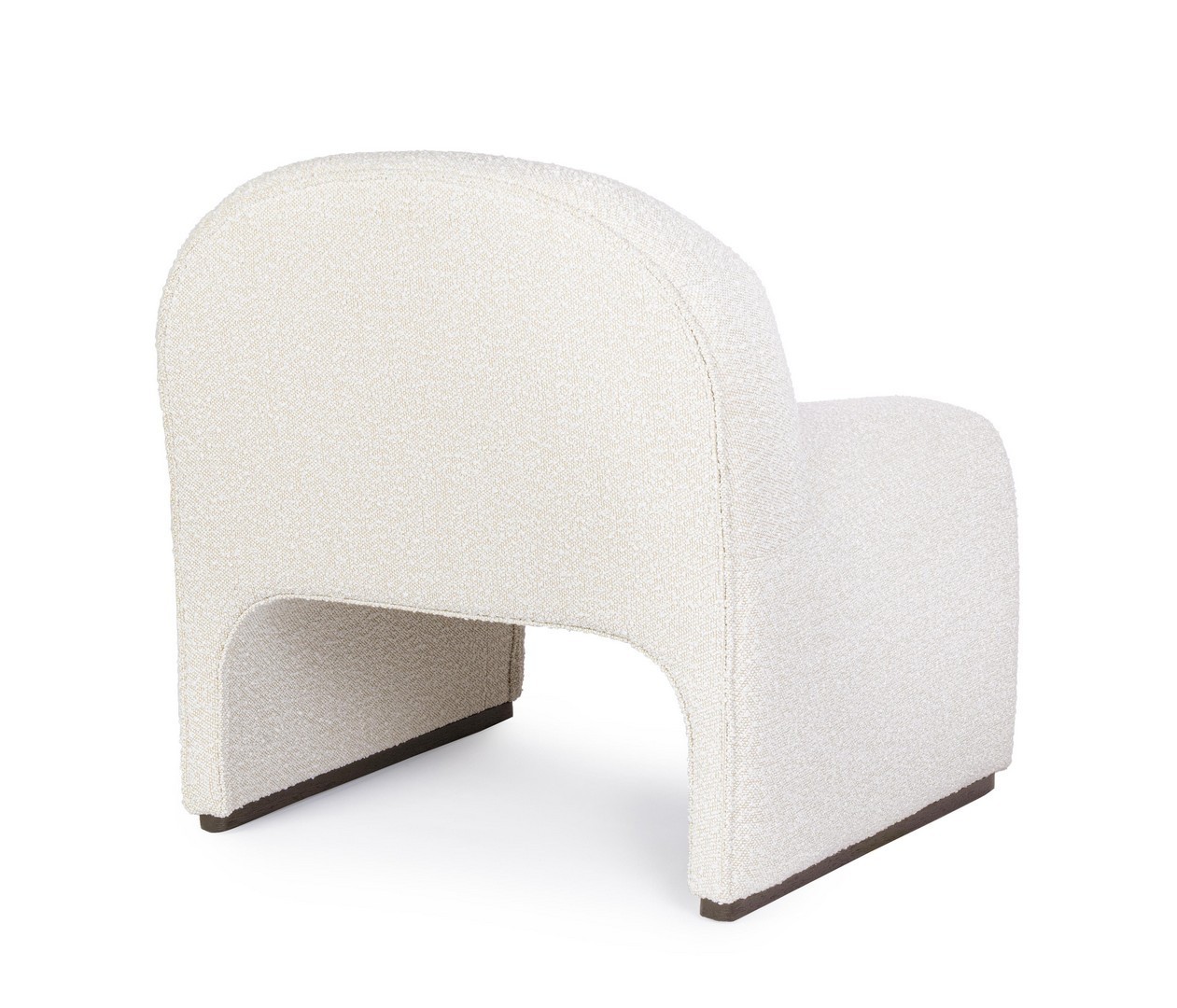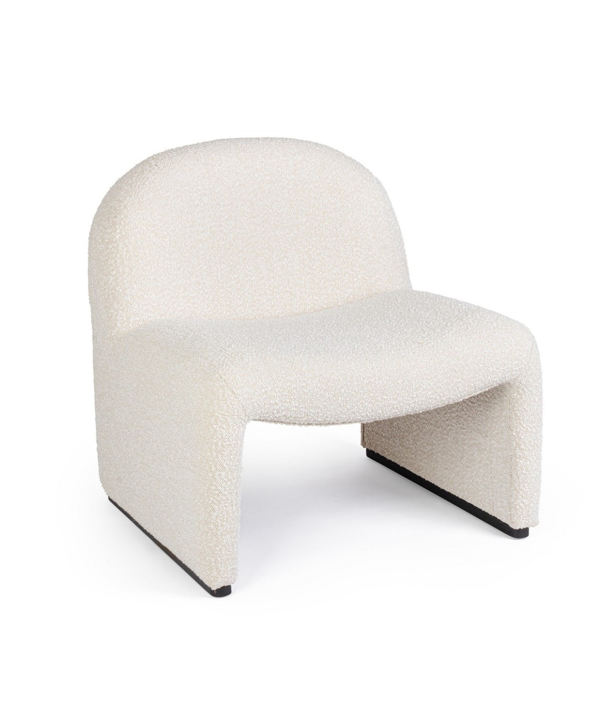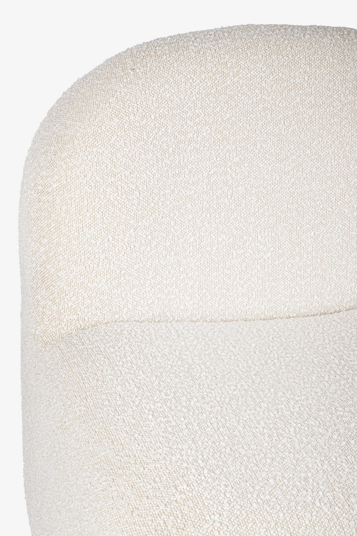 STRUTTURA IN LEGNO DI PINO E COMPENSATO. PIEDINI IN RUBBERWOOD. RIVESTIMENTO IN POLIESTERE EFFETTO BOUCLE'. DENSITA' IMBOTTITURA IN SCHIUMA POLIURETANICA 16/24 KG/M3.