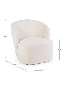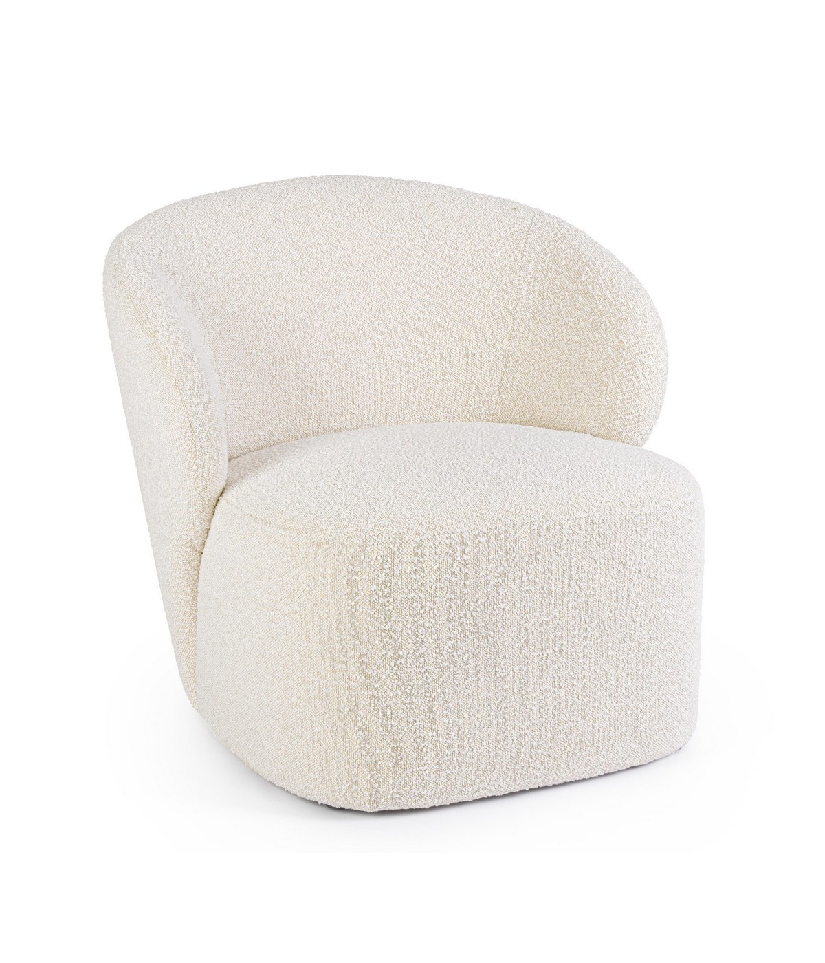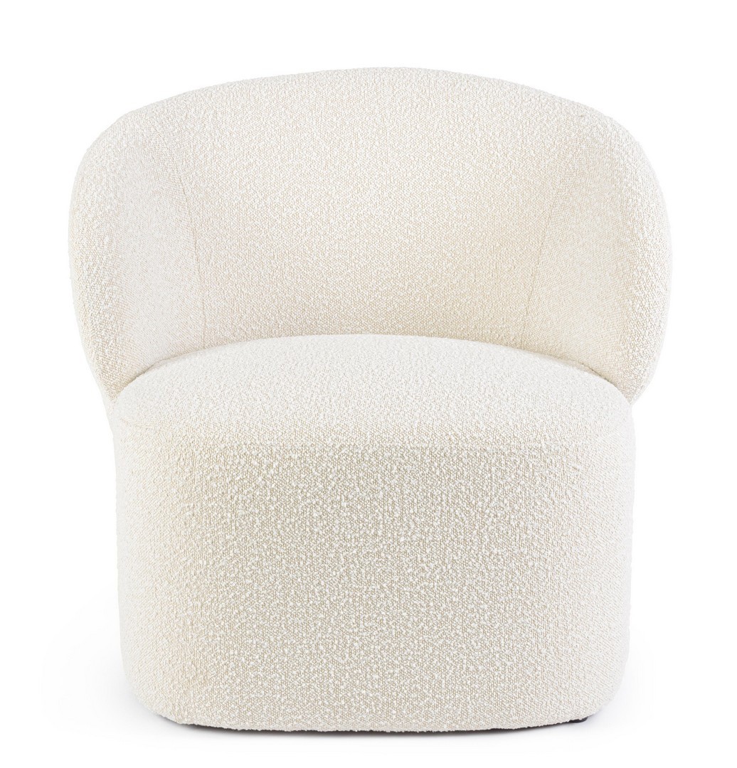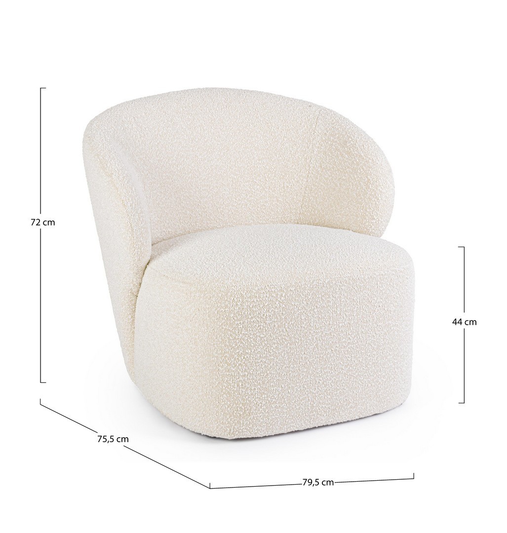 STRUTTURA IN LEGNO DI PINO E COMPENSATO. RIVESTIMENTO IN POLIESTERE EFFETTO BOUCLE'. DENSITA' IMBOTTITURA IN SCHIUMA POLIURETANICA 20/24 KG/M3.