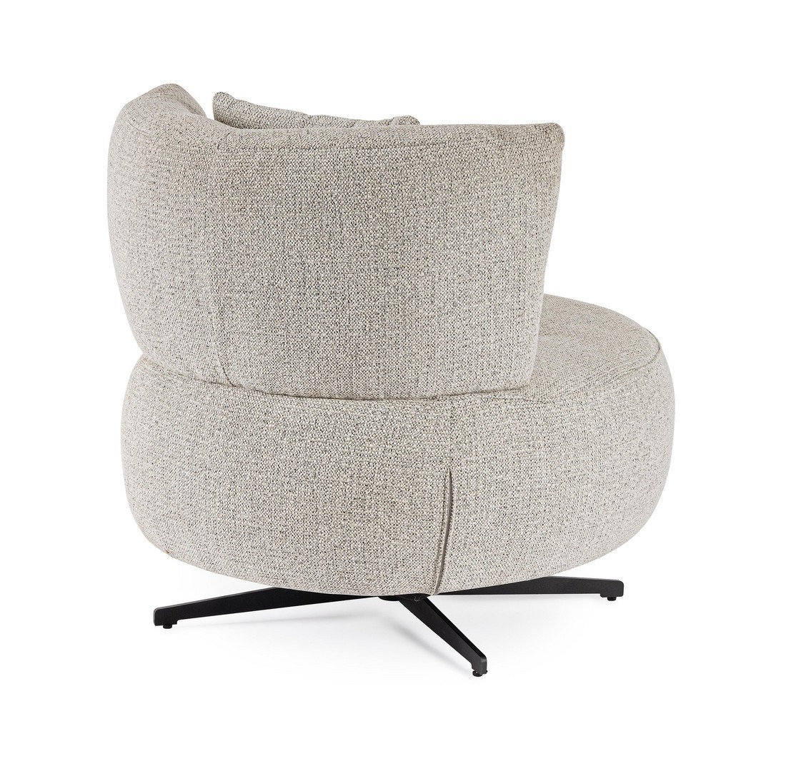 STRUTTURA IN COMPENSATO ED ACCIAIO RIVESTITA IN POLIESTERE EFFETTO CINIGLIA . BASE DIAM 795 MM CON GAMBE IN ACCIAIO VERNICIATO A POLVERE E SEDUTA GIREVOLE 360° IMBOTTITURA IN SCHIUMA POLIURETANICA DENSITA' 20-29 KG/M3. DA ASSEMBLARE.