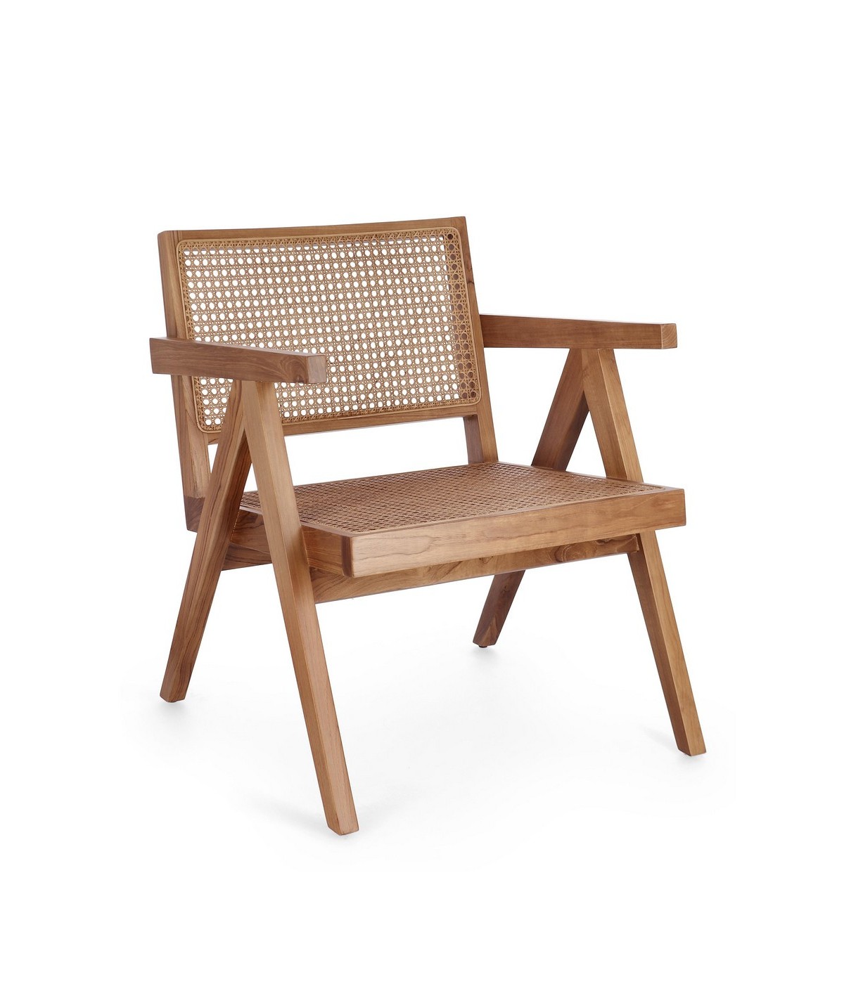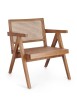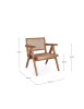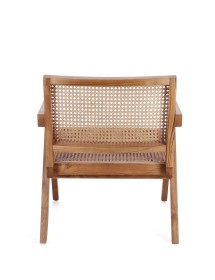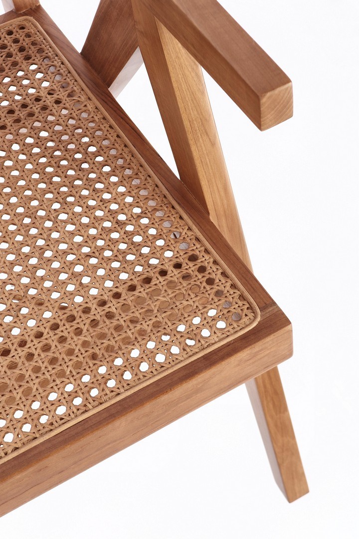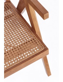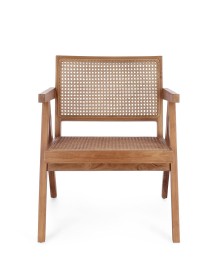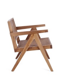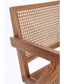 LEGNO TEAK, FINITURA NATURALE CON VERNICE A BASE DI NITROCELLULOSA. SCHIENALE CON INTRECCIO IN RATTAN. SOLO PER USO INTERNO.