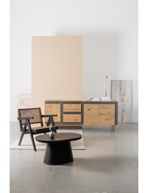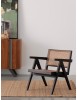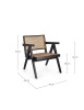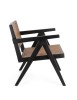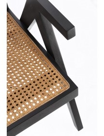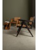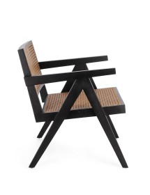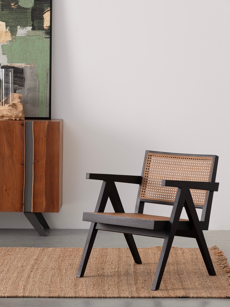 LEGNO TEAK, FINITURA NATURALE CON VERNICE A BASE DI NITROCELLULOSA. SCHIENALE CON INTRECCIO IN RATTAN. SOLO PER USO INTERNO.