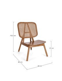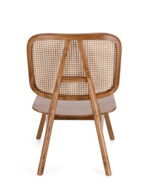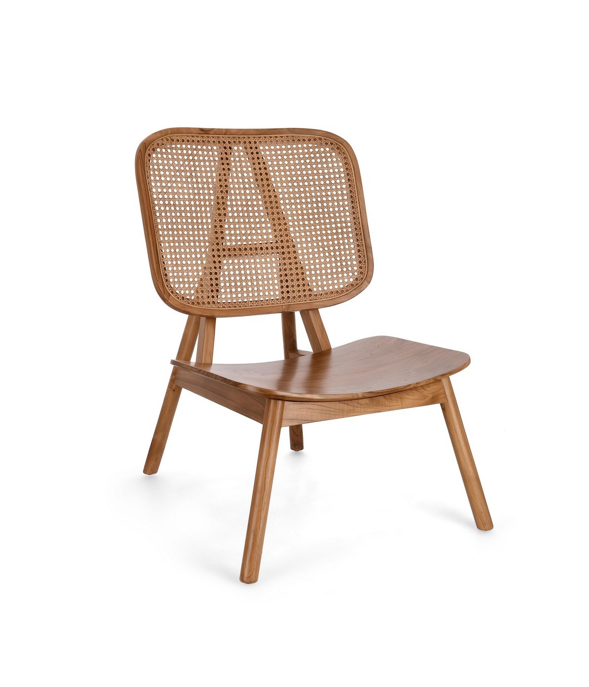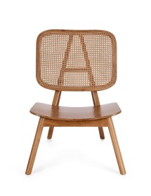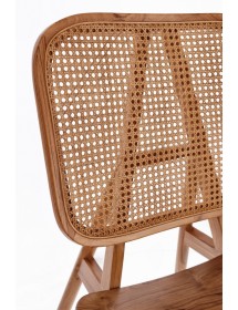 LEGNO TEAK, FINITURA NATURALE CON VERNICE A BASE DI NITROCELLULOSA. SCHIENALE CON INTRECCIO IN RATTAN. SOLO PER USO INTERNO.
