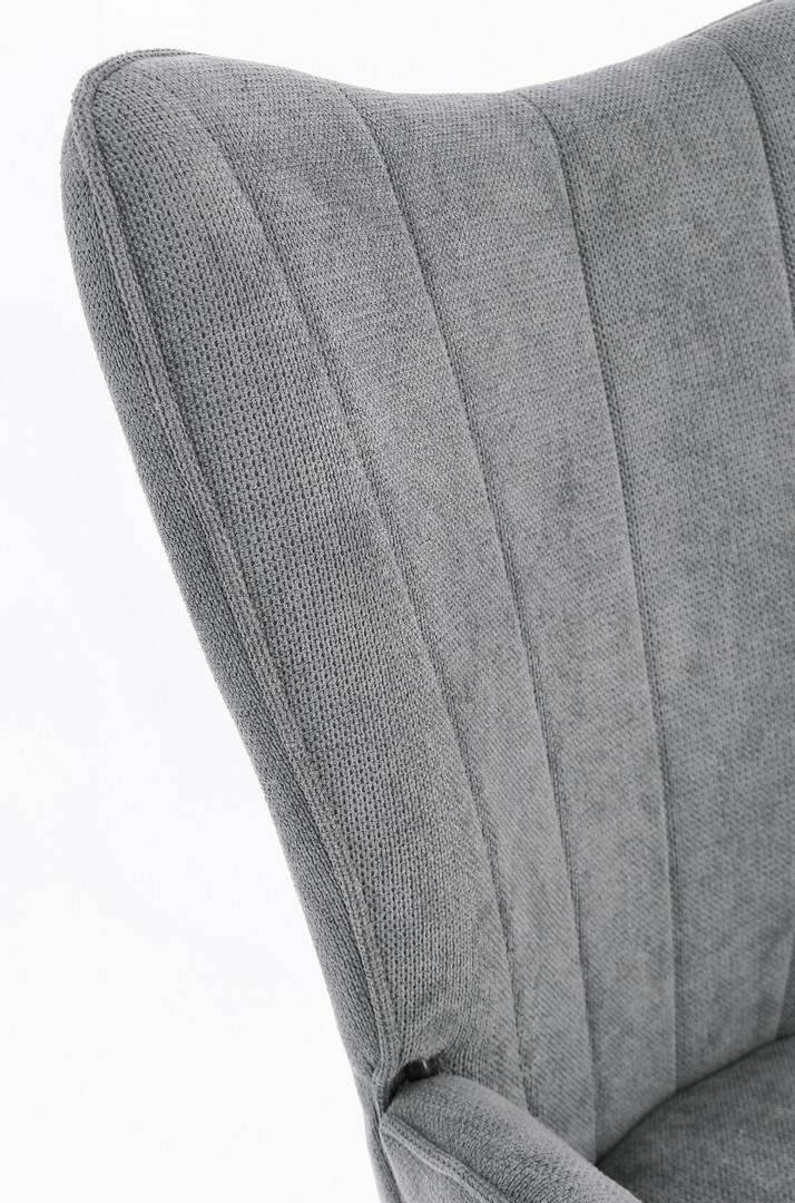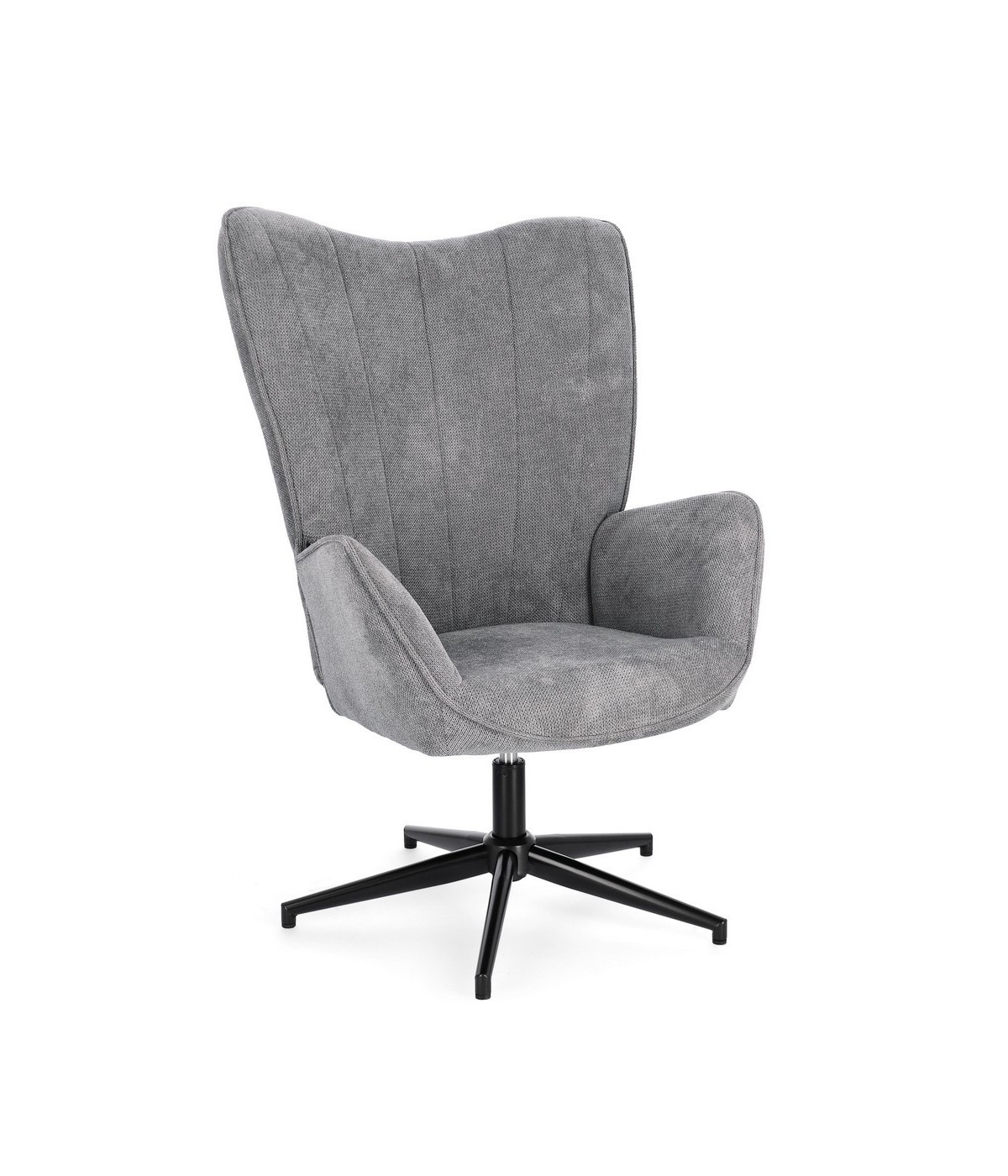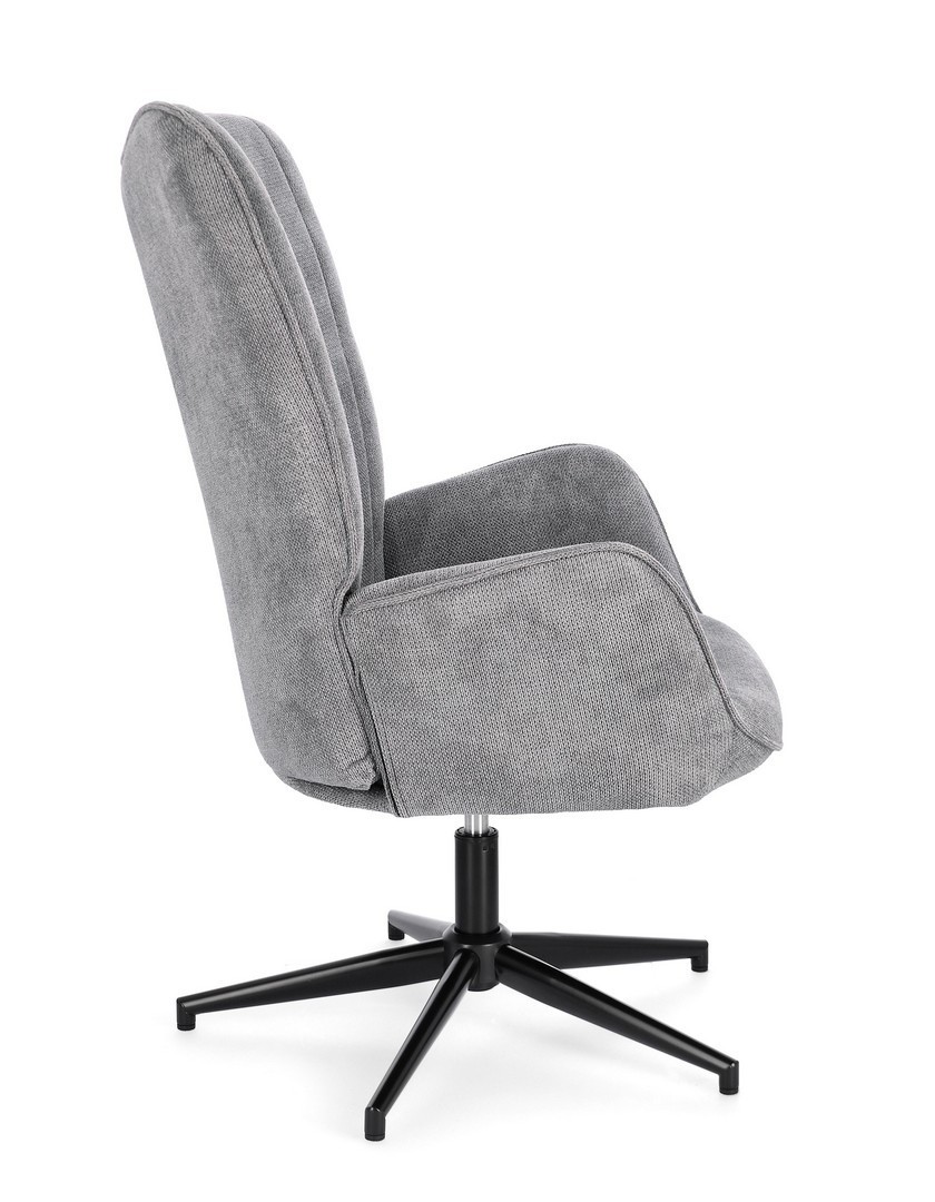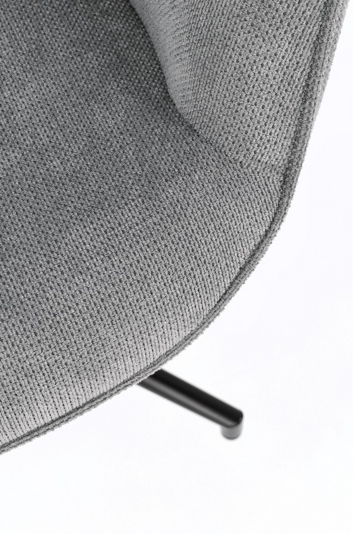 STRUTTURA IN ACCIAIO, GAMBE IN ACCIAIO VERNICIATO A POLVERE. RIVESTIMENTO IN 100% POLIESTERE. IMBOTTITURA IN SCHIUMA POLIURETANICA. BASE GIREVOLE 360GR. GAMBE DA ASSEMBLARE.
