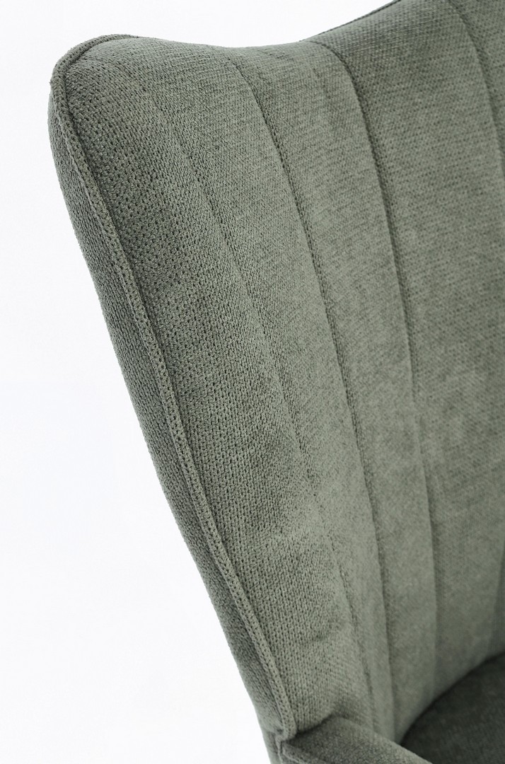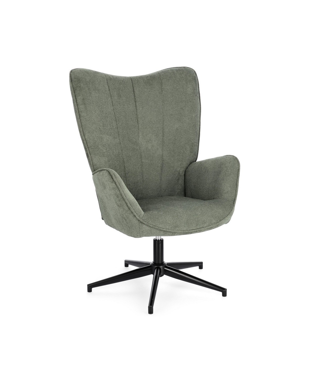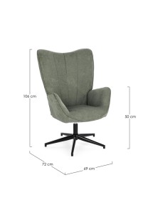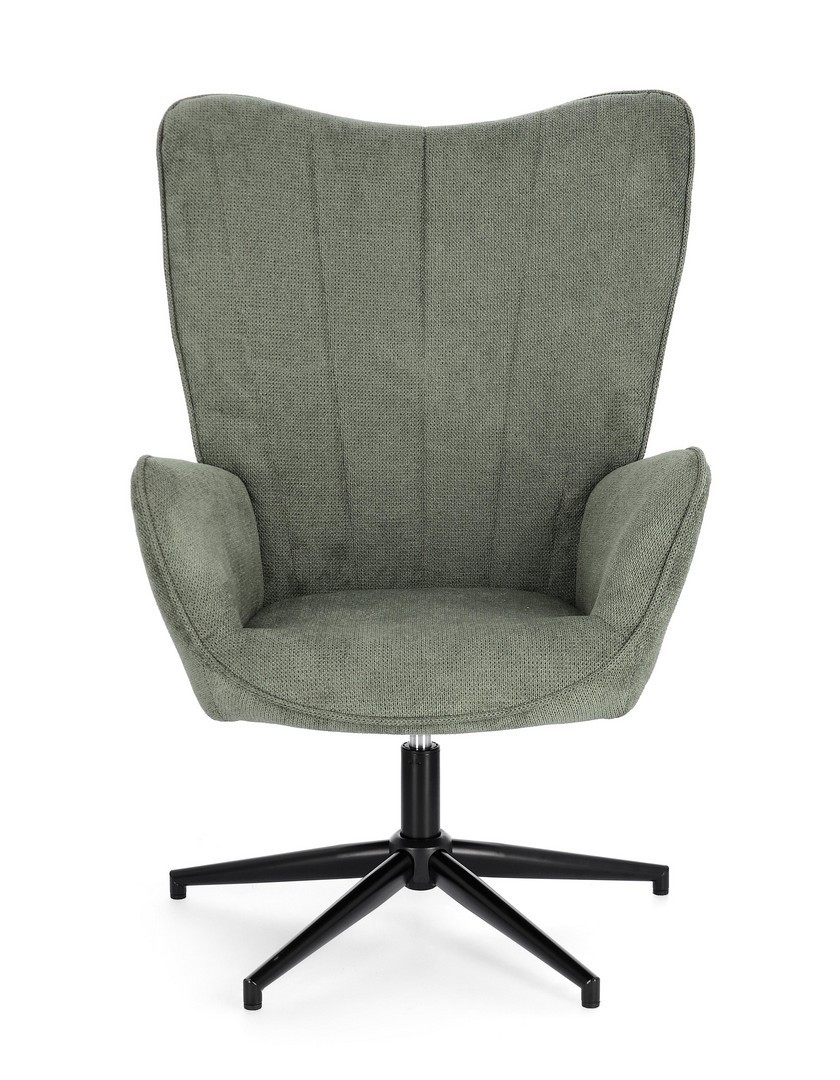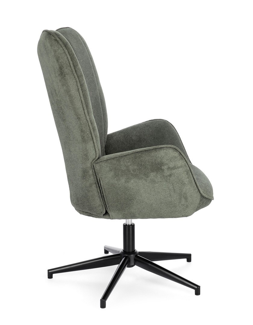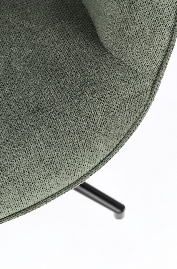 STRUTTURA IN ACCIAIO, GAMBE IN ACCIAIO VERNICIATO A POLVERE. RIVESTIMENTO IN 100% POLIESTERE. IMBOTTITURA IN SCHIUMA POLIURETANICA. BASE GIREVOLE 360GR. GAMBE DA ASSEMBLARE.