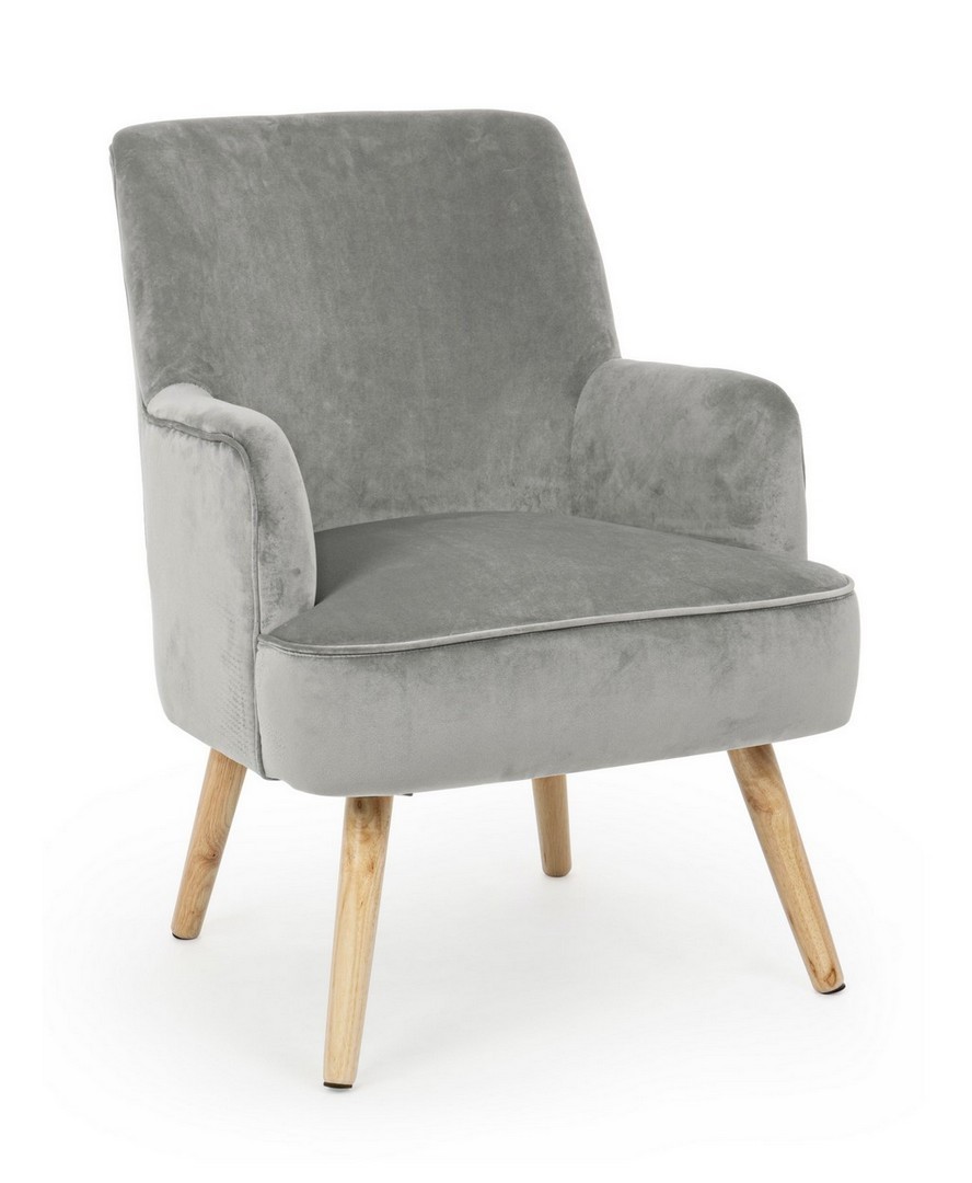STRUTTURA IN RUBBERWOOD E MDF, VERNICIATURA A BASE DI NITROCELLULOSA. RIVESTIMENTO IN POLIESTERE EFFETTO VELLUTO. DENSITA' IMBOTTITURA SEDUTA 36KG/M3 SCHIENALE 25KG/M3. GAMBE DA ASSEMBLARE.