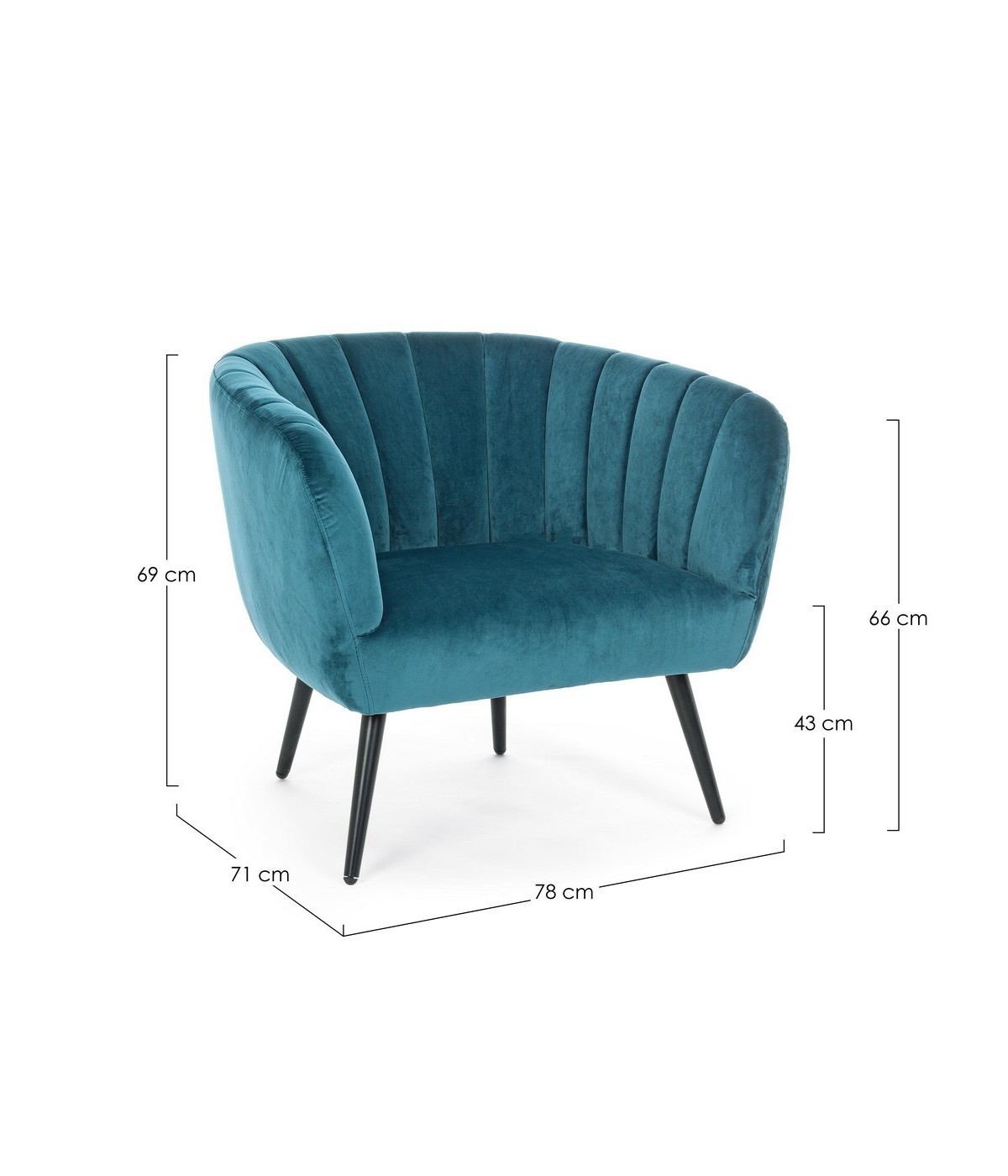 STRUTTURA IN LEGNO COMPENSATO, GAMBE IN ACCIAIO VERNICIATO A POLVERE EPOSSIDICA. RIVESTIMENTO IN POLIESTERE EFFETTO VELLUTO. DENSITA' IMBOTTITURA SEDUTA 28KG/M3 SCHIENALE 20KG/M3. NON SFODERABILE. GAMBE DA ASSEMBLARE.