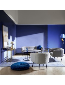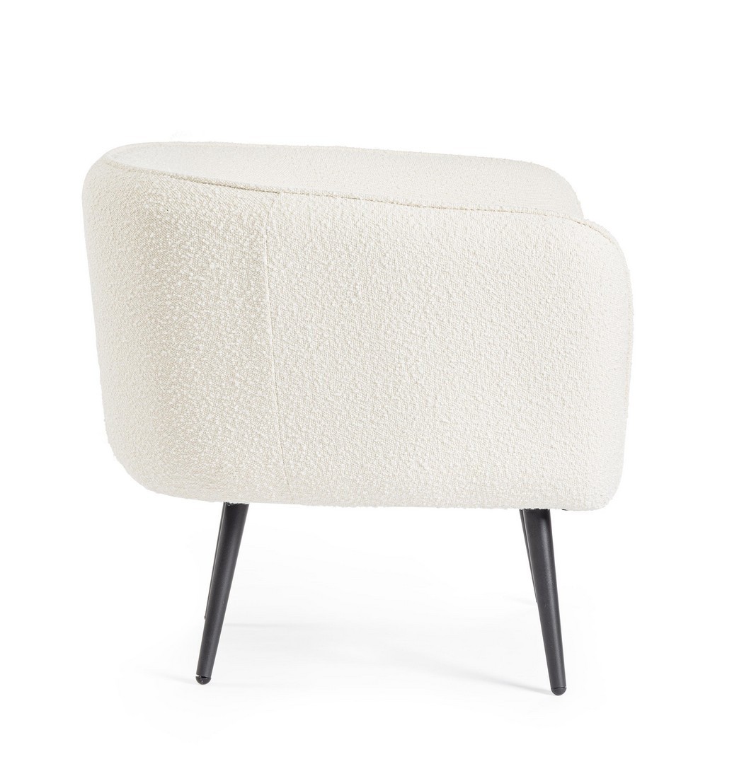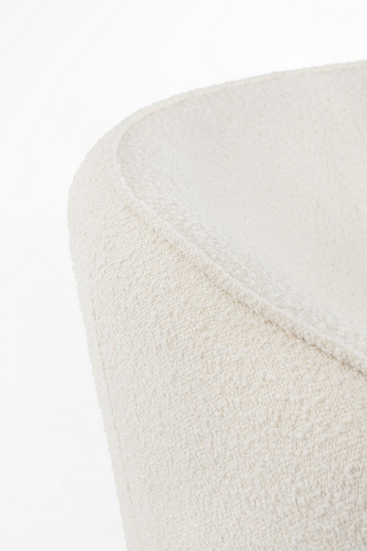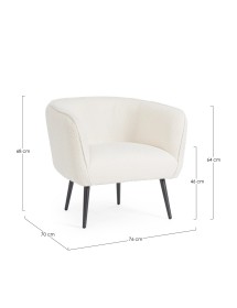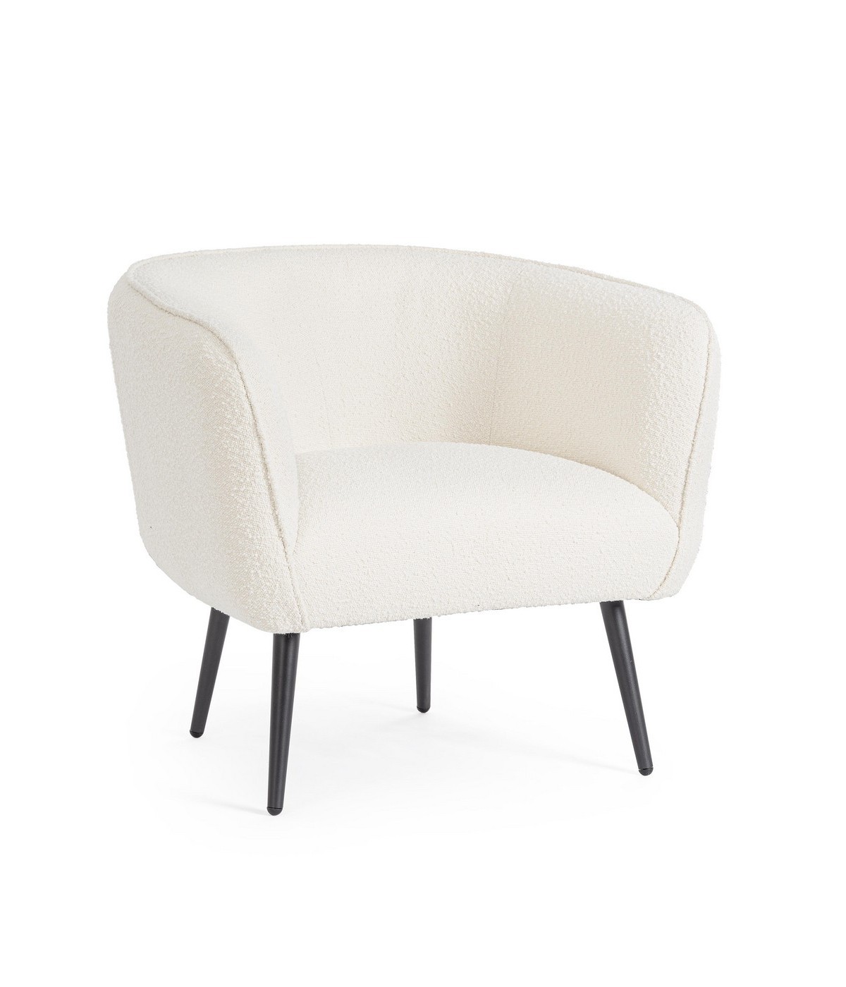 STRUTTURA IN LEGNO COMPENSATO, GAMBE IN ACCIAIO VERNICIATO A POLVERE EPOSSIDICA. RIVESTIMENTO IN POLIESTERE EFFETTO BOUCLE'. DENSITA' IMBOTTITURA SEDUTA 28KG/M3 SCHIENALE 20KG/M3. NON SFODERABILE. GAMBE DA ASSEMBLARE.