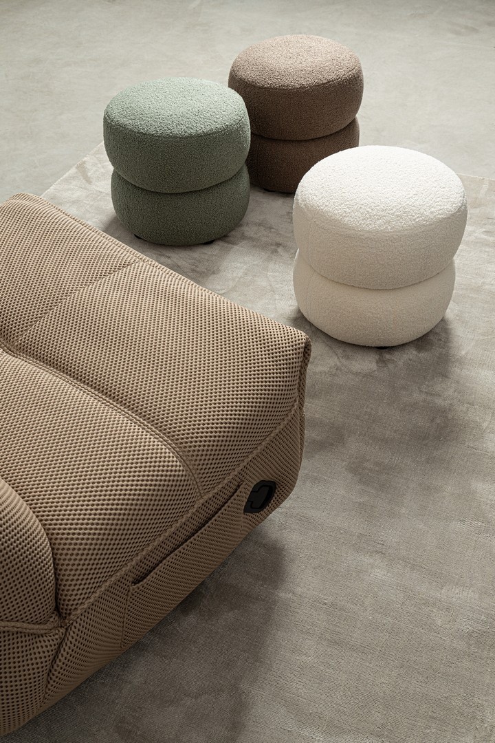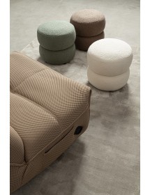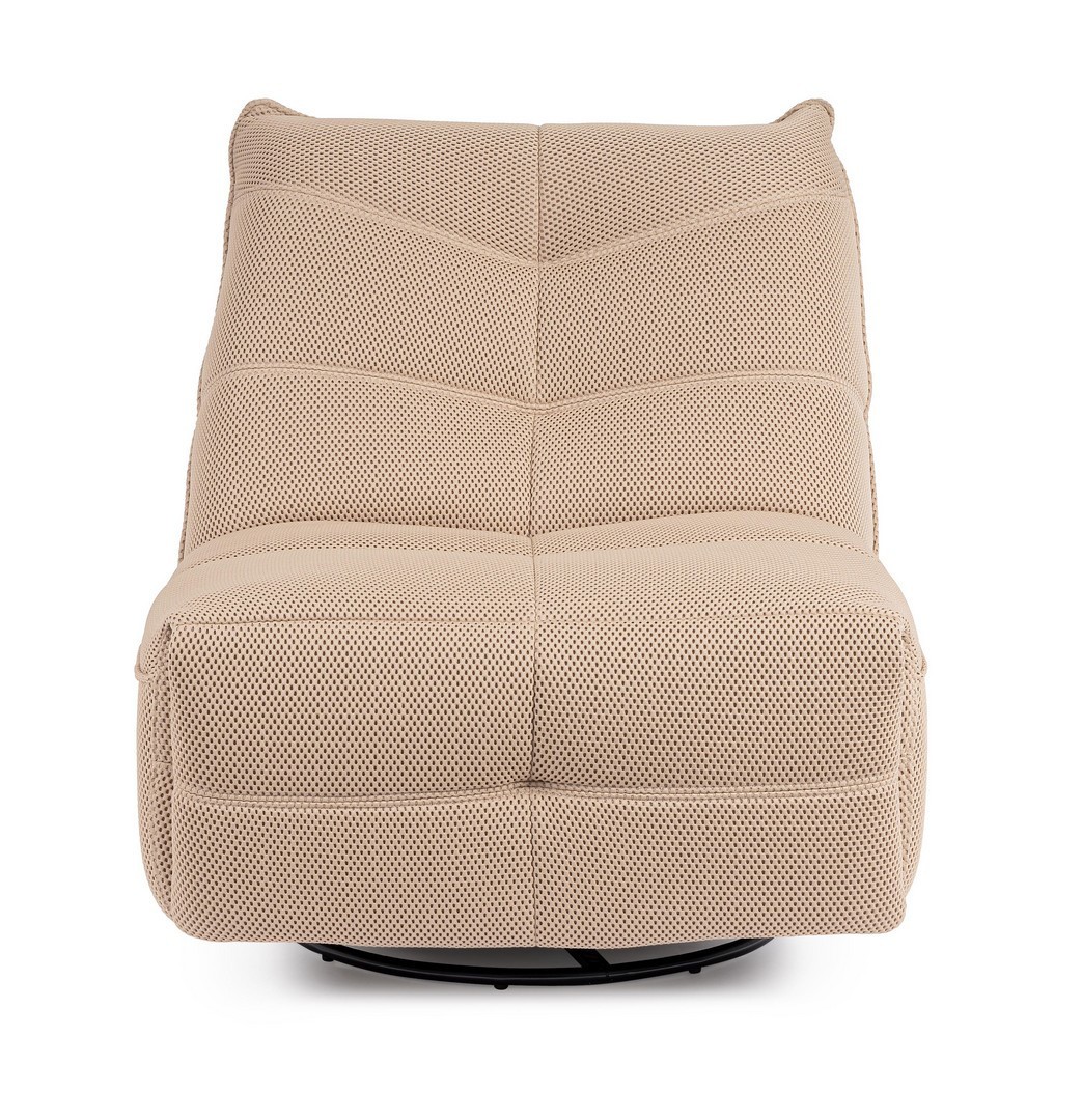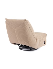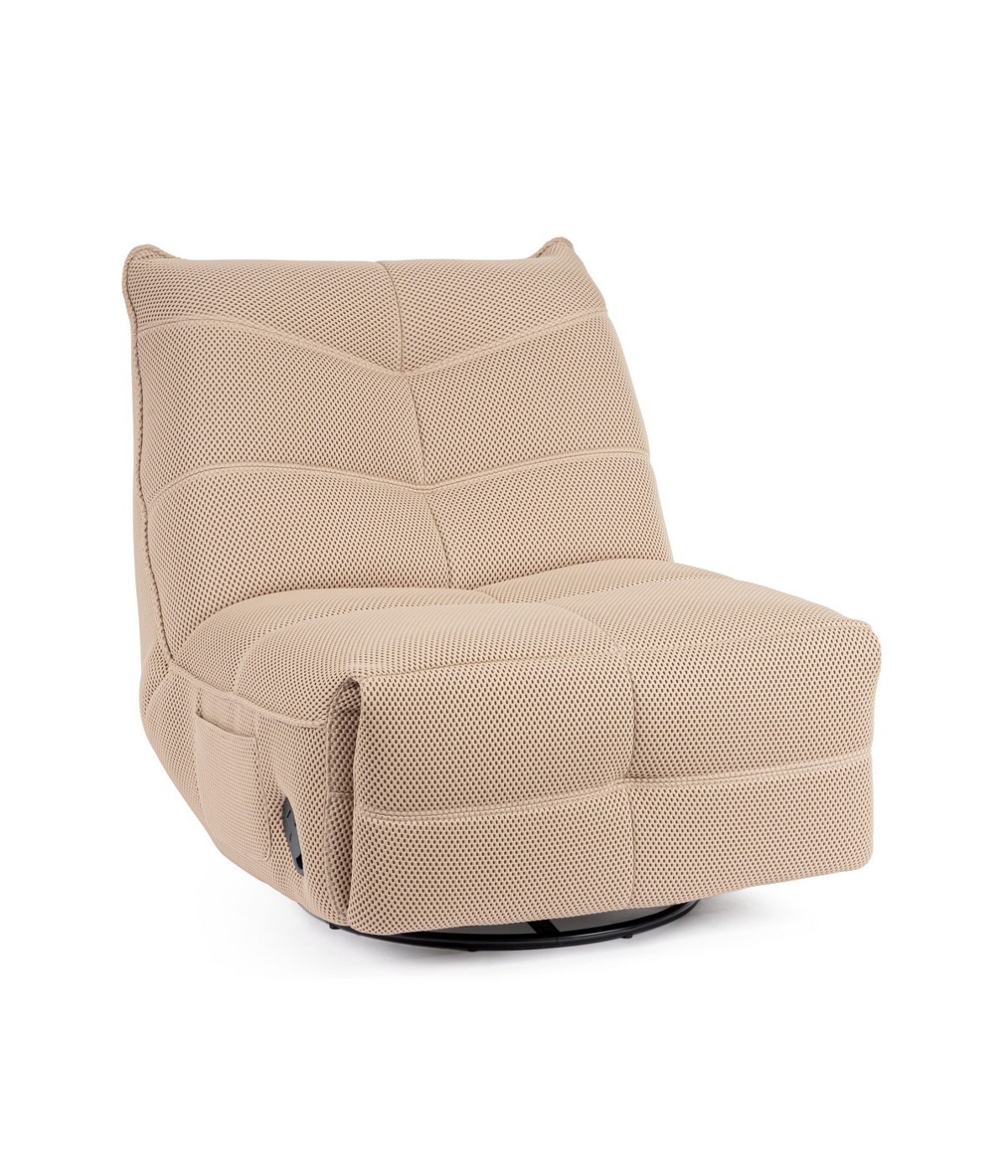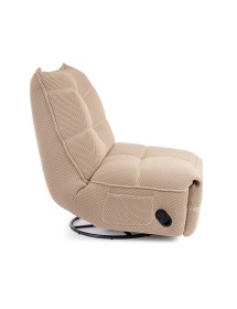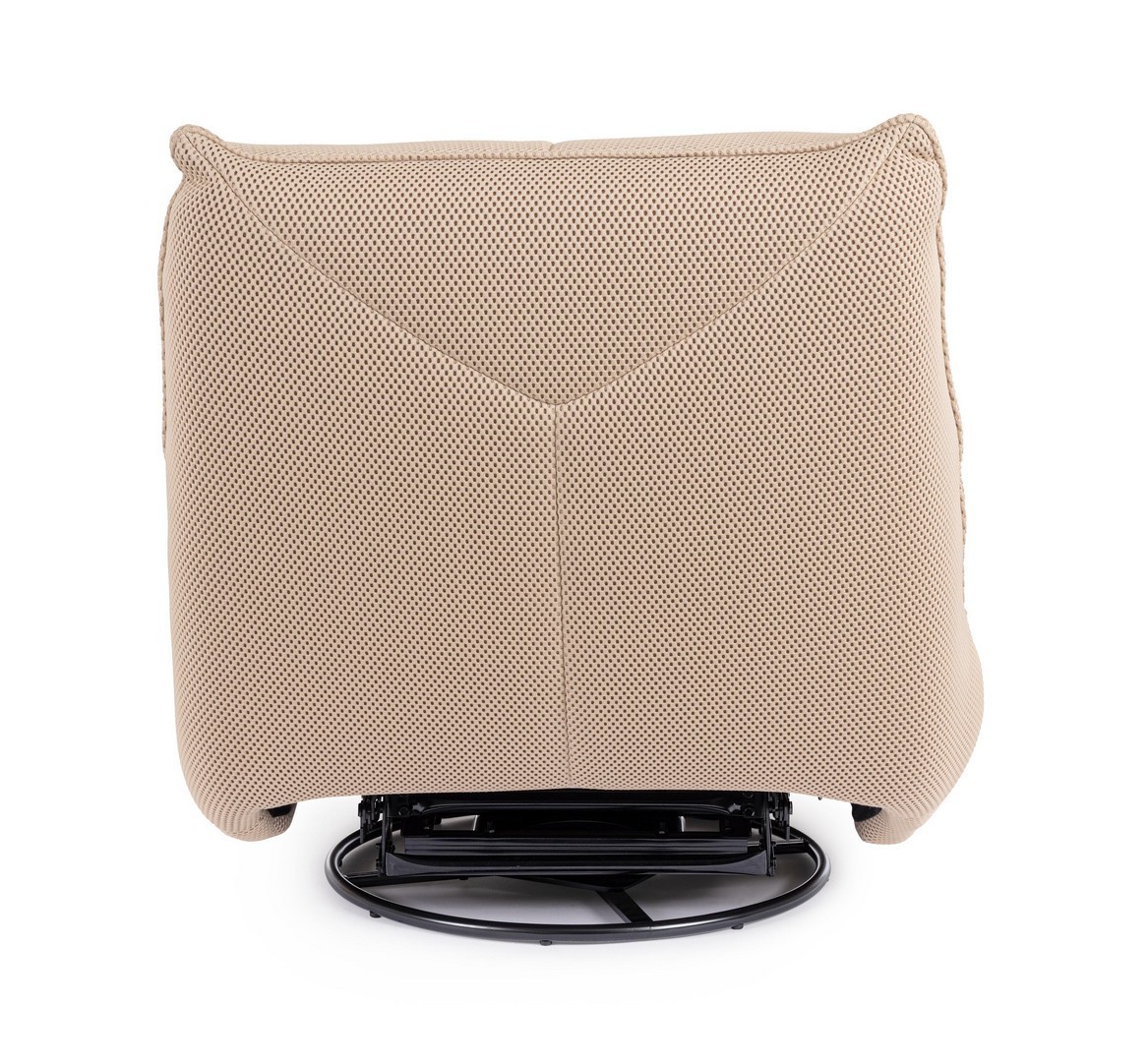 STRUTTURA IN COMPENSATO ED ACCIAIO. RIVESTIMENTO IN POLIESTERE EFFETTO TESSUTO TECHNO 3D . IMBOTTITURA IN SCHIUMA POLIURETANICA DENSITA' 20-24 KG/M3. GIREVOLE 360° E RECLINABILE PARTE POGGIAPIEDI.