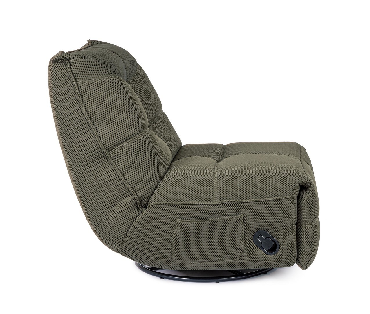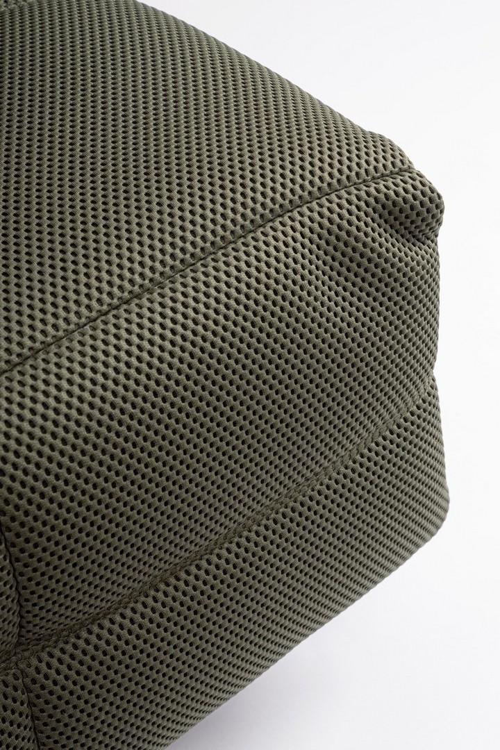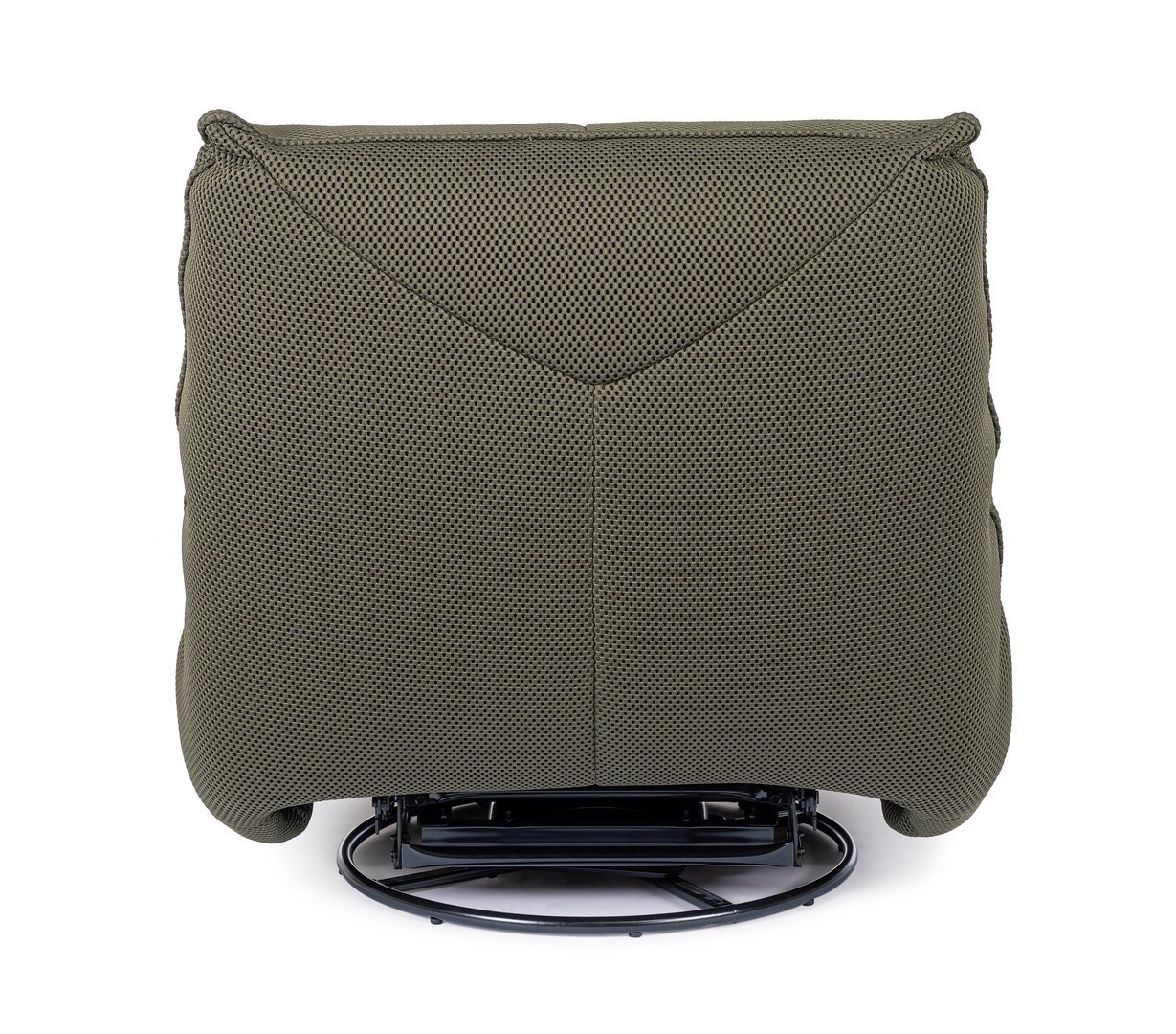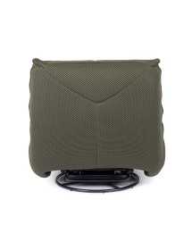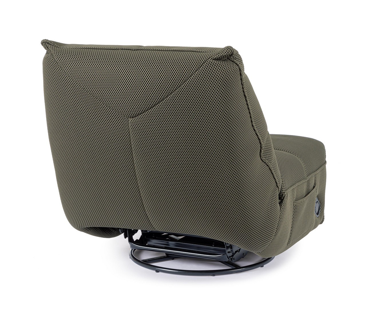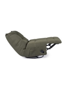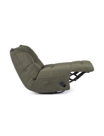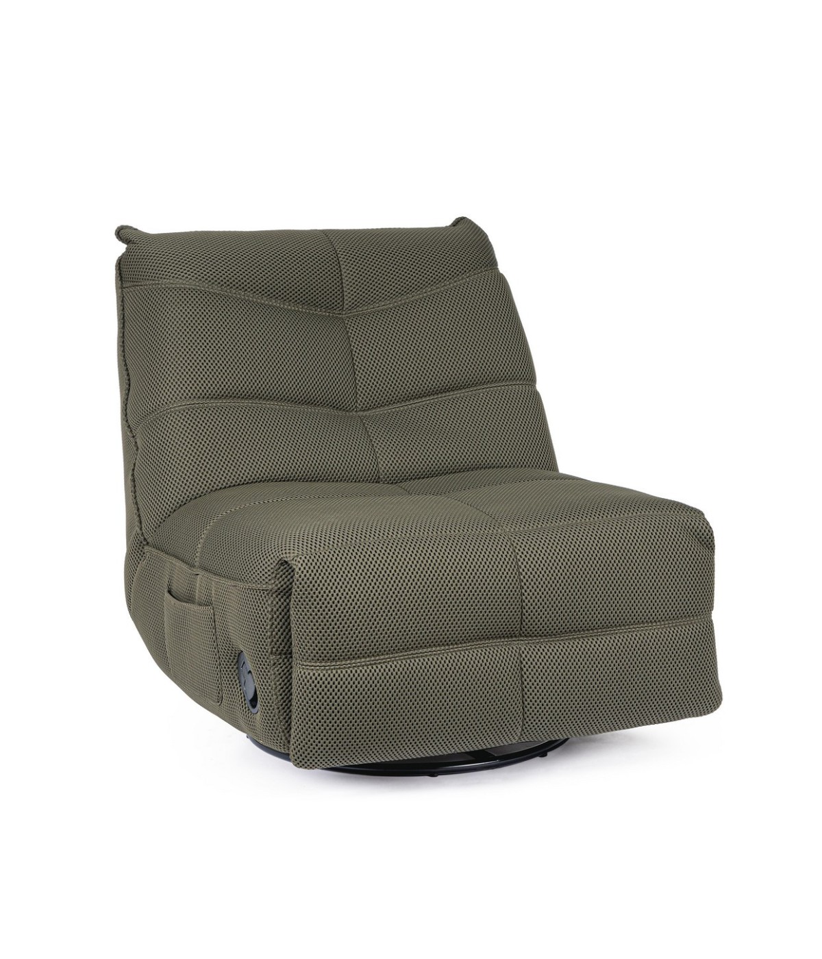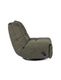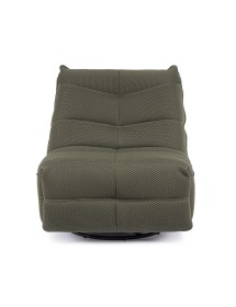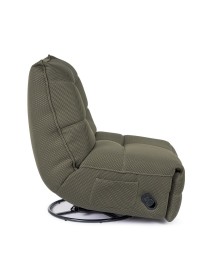 STRUTTURA IN COMPENSATO ED ACCIAIO. RIVESTIMENTO IN POLIESTERE EFFETTO TESSUTO TECHNO 3D . IMBOTTITURA IN SCHIUMA POLIURETANICA DENSITA' 20-24 KG/M3. GIREVOLE 360° E RECLINABILE PARTE POGGIAPIEDI.