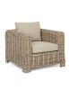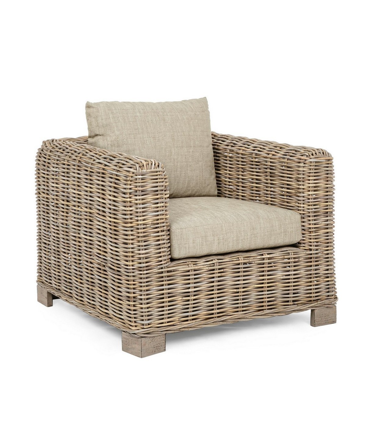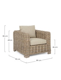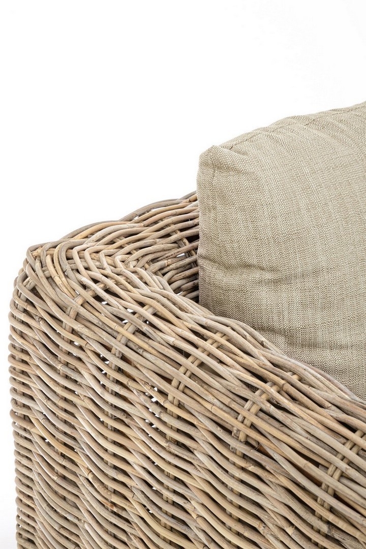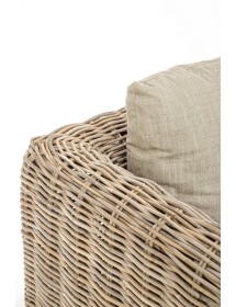 STRUTTURA IN LEGNO DI MANGO E RATTAN, INTRECCIO IN KUBU, FINITURA NATURALE A BASE DI NITROCELLULOSA. CUSCINI SFODERABILI CON TESSUTO PER USO INTERNO (55% COTONE, 45% POLIESTERE). SI RACCOMANDA DI NON ESPORRE IL MOBILE ALLA LUCE DIRETTA DEL SOLE E ALLE INTEMPERIE. IMBALLO SENZA CARTONE.
