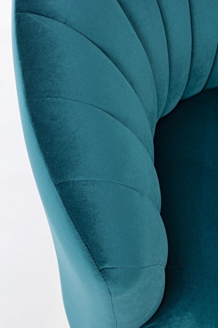 STRUTTURA IN LEGNO DI PINO, RIVESTIMENTO IN POLIESTERE EFFETTO VELLUTO, DENSITA' IMBOTTITURA IN SCHIUMA POLIURETANICA 24KG/M3. NON SFODERABILE, SEDUTA CON CUSCINO INTEGRATO. BASE IN ACCIAIO INOSSIDABILE.