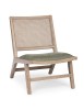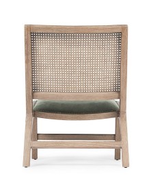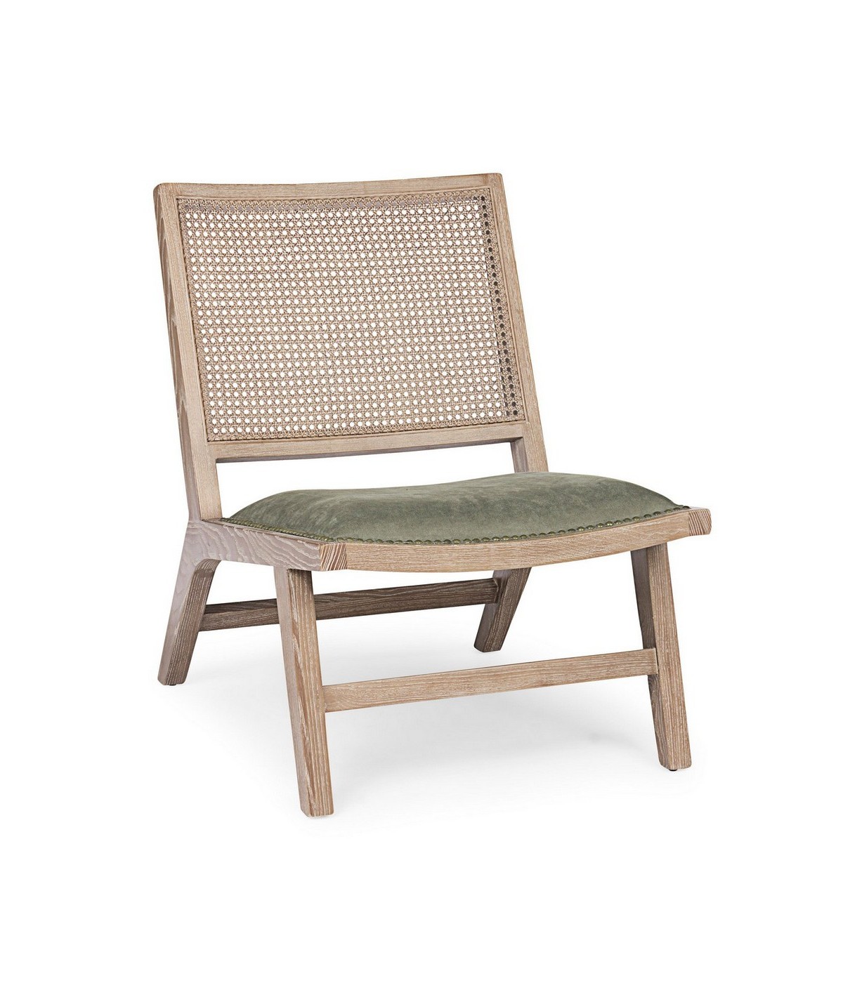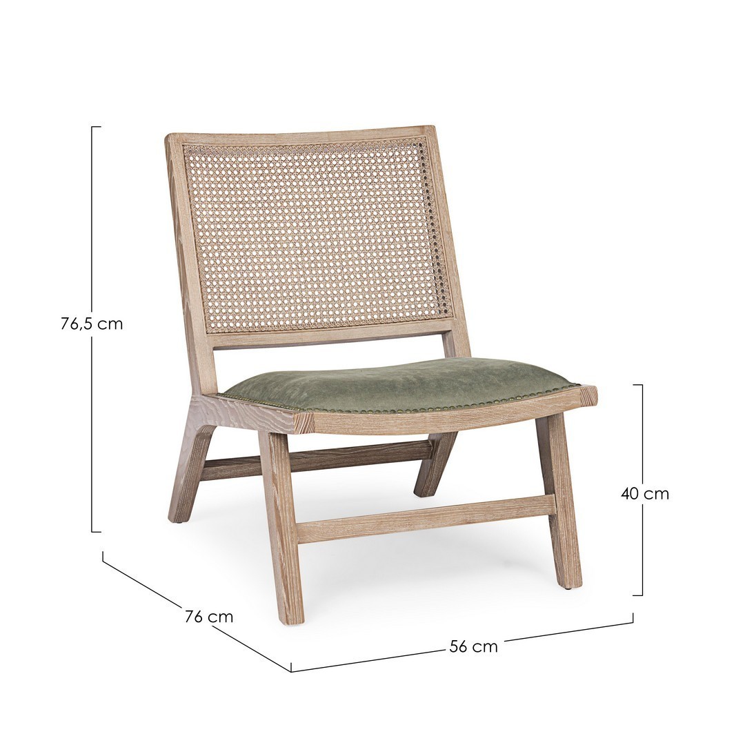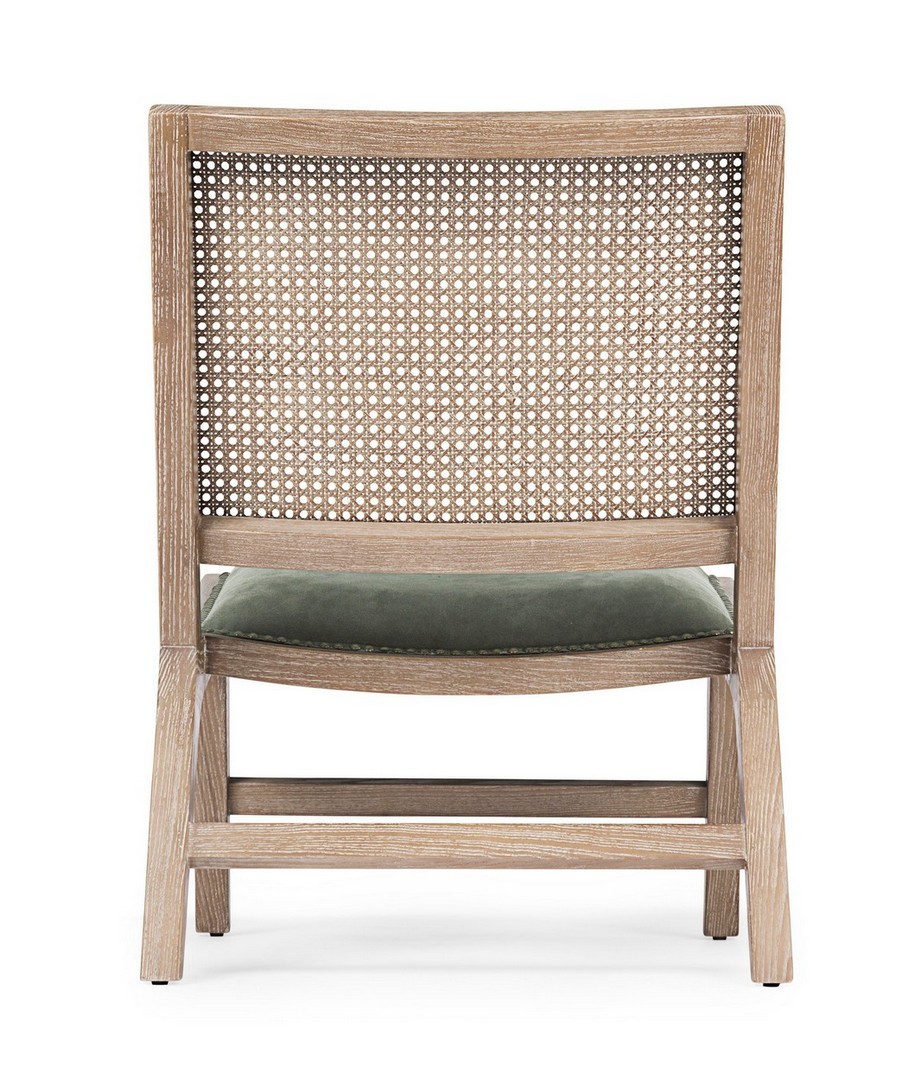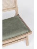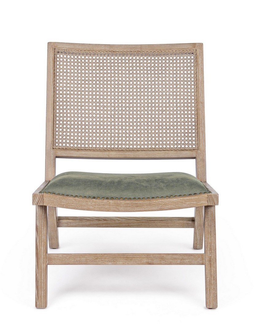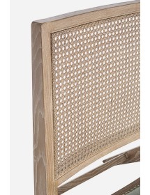 STRUTTURA IN LEGNO DI FRASSINO CON FINITURA A BASE DI NITROCELLULOSA, SCHIENALE CON INTRECCIO IN RATTAN. RIVESTIMENTO SEDUTA IN POLIESTERE CON APPLICAZIONE DI BORCHIE IN METALLO. IMBOTTITURA IN SCHIUMA POLIURETANICA DENSITA' SEDUTA 30KG/M3.