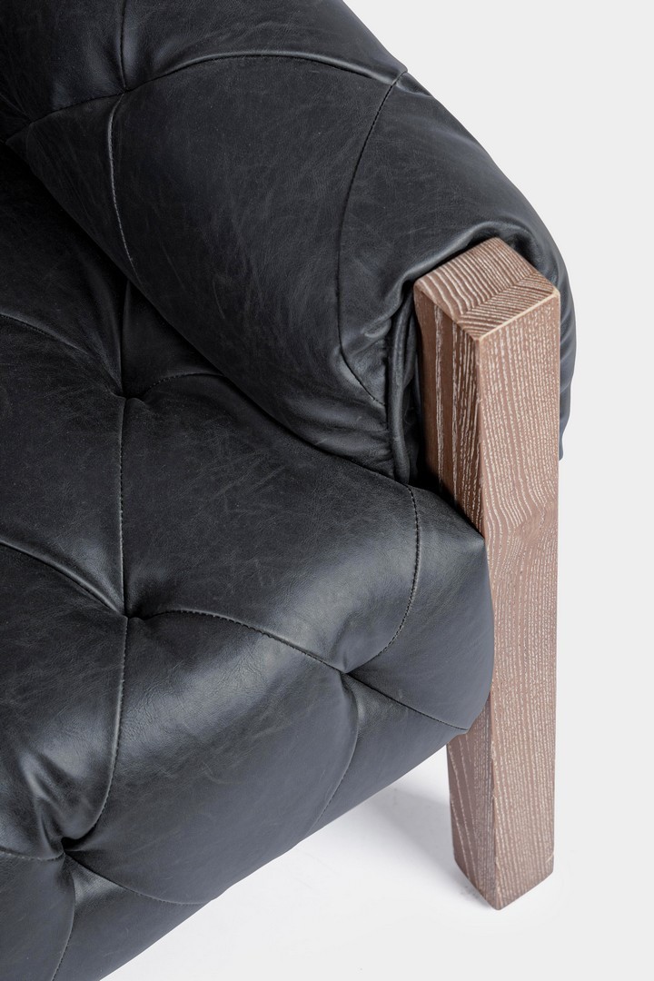 STRUTTURA IN LEGNO DI FRASSINO, RIVESTIMENTO IN SIMILPELLE (PU) E LAVORAZIONE A CAPITONNE'. DENSITA' IMBOTTITURA IN SCHIUMA POLIURETANICA SEDUTA 30KG/M3, SCHIENALE 25KG/M3.
