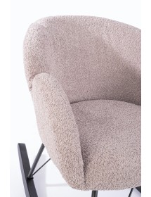 STRUTTURA IN ACCIAIO VERNICIATO A POLVERE EPOSSIDICA. GAMBE IN ACCIAIO VERNICIATE A POLVERE EPOSSIDICA E LEGNO RUBBER WOOD. RIVESTIMENTO IN POLIESTERE EFFETTO BOUCLE'. IMBOTTITURA IN SCHIUMA POLIURETANICA (DENSITA' 25KG/M3 SEDUTA, 18KG/M3 SCHIENALE). GAMBE DA ASSEMBLARE.