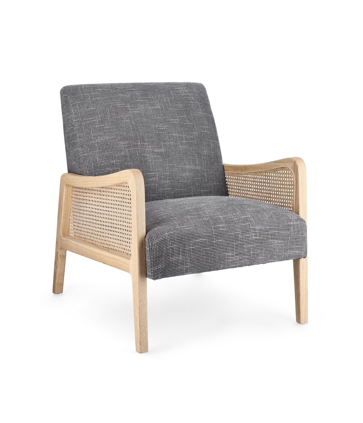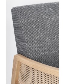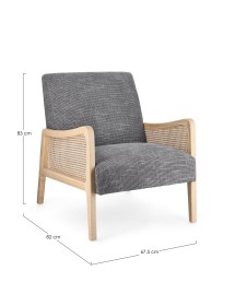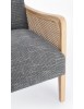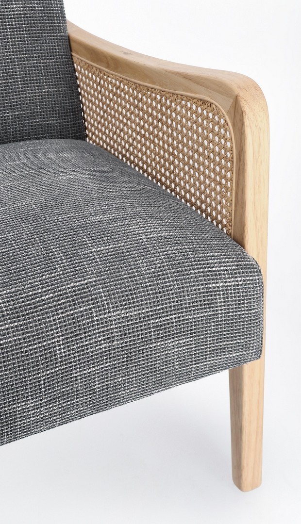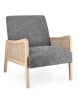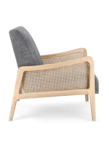 STRUTTURA IN LEGNO DI PINO E COMPENSATO. GAMBE IN RUBBERWOOD. BRACCIOLI CON INSERTI IN RATTAN. RIVESTIMENTO IN POLIESTERE. DENSITA' IMBOTTITURA IN SCHIUMA POLIURETANICA 24 KG/M3. NON SFODERABILE. GAMBE DA ASSEMBLARE.
