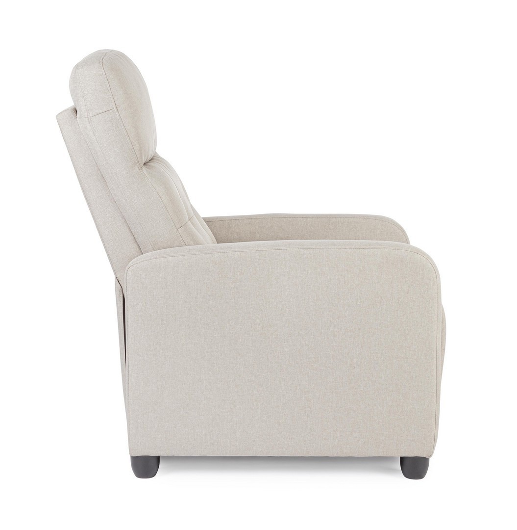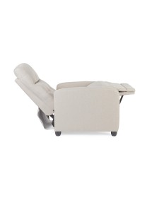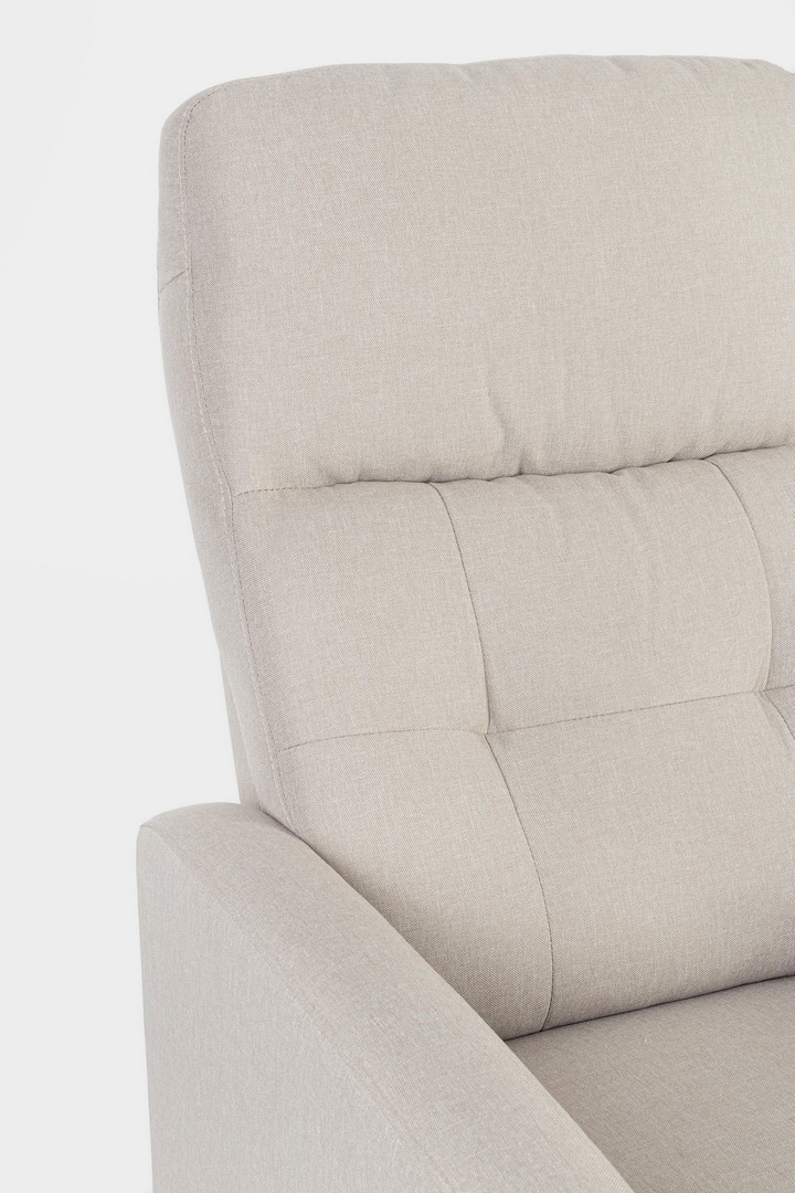 STRUTTURA IN COMPENSATO ED ACCIAIO. IMBOTTITURA IN SCHIUMA POLIURETANICA. RIVESTIMENTO IN POLIESTERE EFFETTO LINO. SCHIENALE RECLINABILE CON SISTEMA PUSH- BACK. PIEDINI IN PLASTICA. DA ASSEMBLARE.