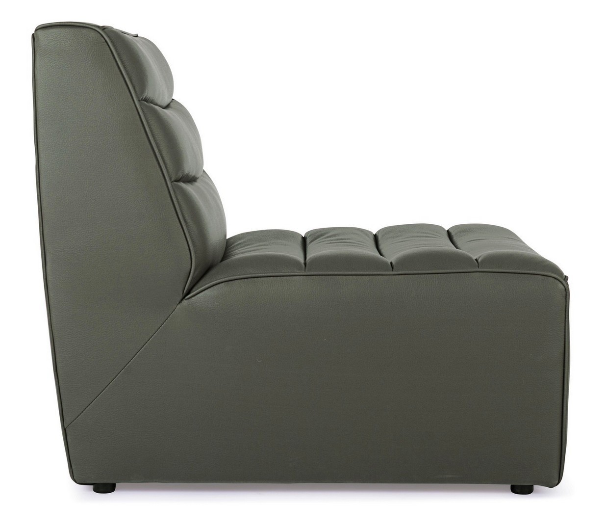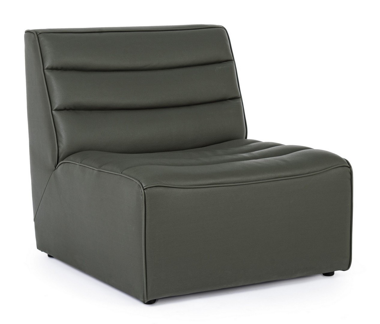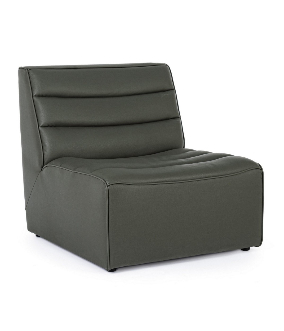 STRUTTURA IN LEGNO COMPENSATO E MDF. RIVESTIMENTO IN POLIESTERE EFFETTO PELLE. DENSITA' IMBOTTITURA 18KG/M3 CON SOSPENSIONE A MOLLE INSACCHETTATE. NON SFODERABILE.