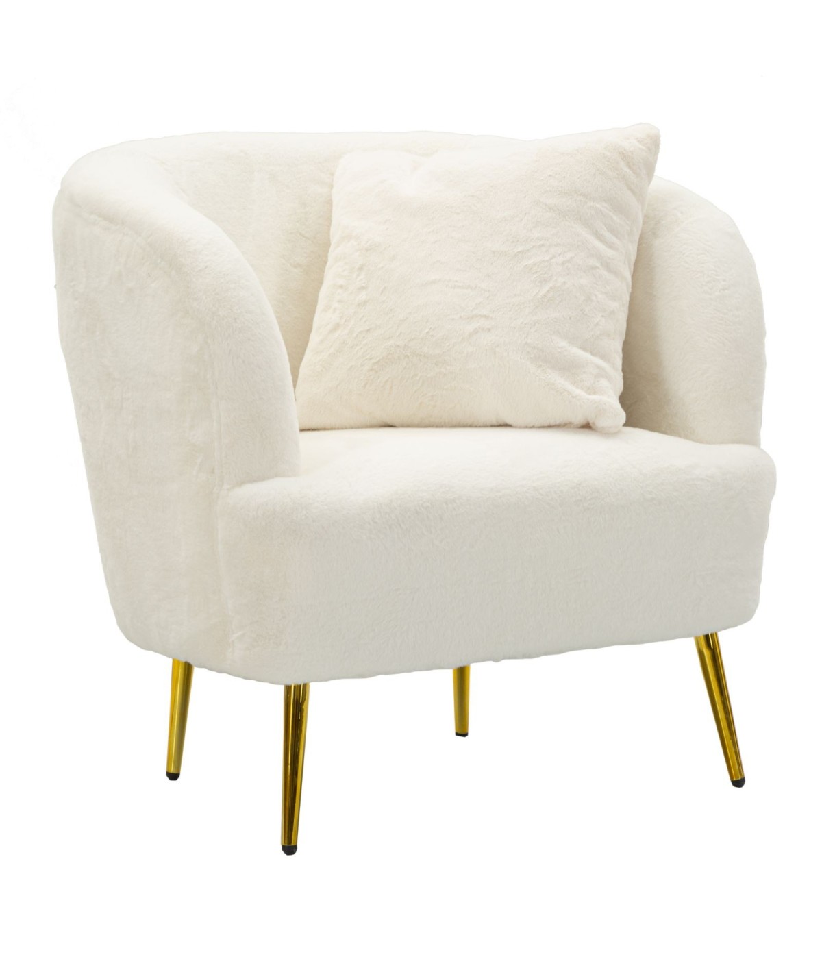 Poltrona bianca con gambe dorate da assemblare, rivestito in morbida pellliccia sintetica. Ideale per ambienti moderni e raffinati, aggiunge un tocco di lusso e comfort.