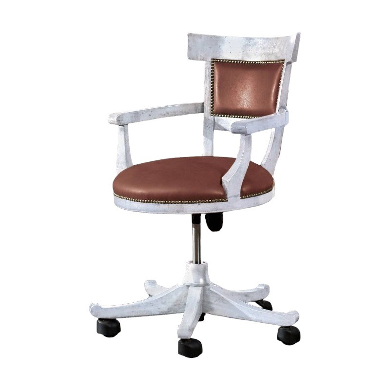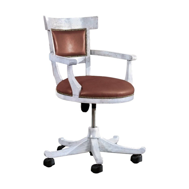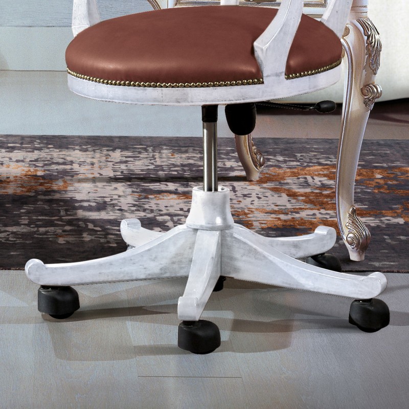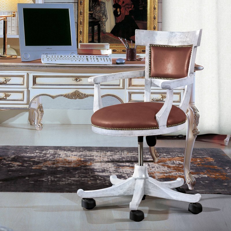 Poltrona girevole classica legno bianco imbottita ecopelle 61x67x87
