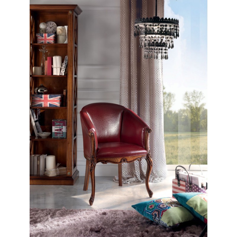 Poltrona in legno ideale per chi ama arredare in stile classico la casa, elegante e versatile da posizionare in qualsiasi stanza . Poltrona Caratterizzata da intagli realizzati a mano, imbottita per garantire un' esperienza di seduta confortevole e unica. Complemento di arredo che non può mancare nella zona living e che si contraddistingue per la sua originalità.
