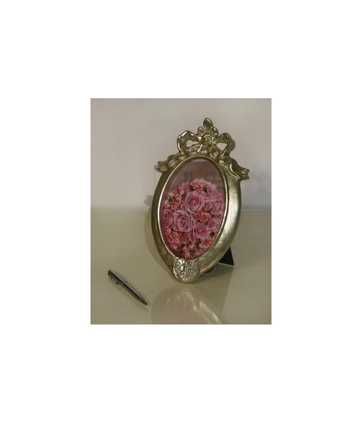 MOBILI2G - portafoto in foglia argento ovale - Misure: l.23 x h.33 x p.2