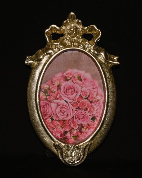 MOBILI2G - portafoto in foglia argento ovale - Misure: l.25 x h.34 x p.2