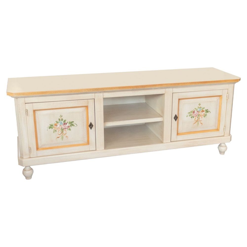 Porta tv in legno 2 ante shabby avorio anticato decoro filo arancione 150X43X56