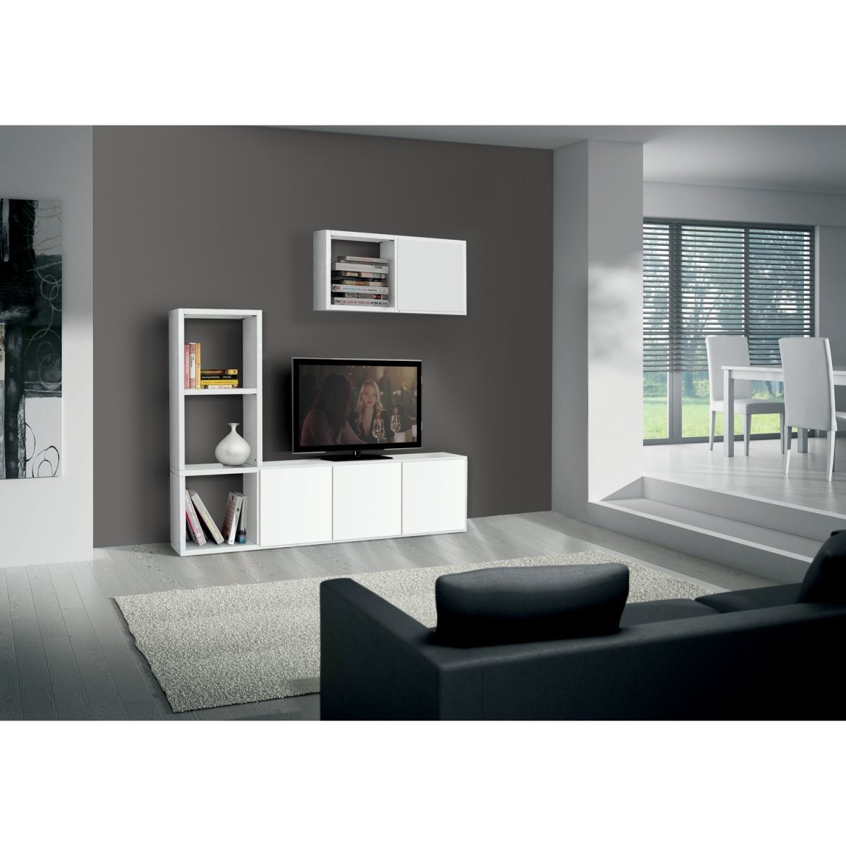 Libreria porta Tv moderna bianca l.175 p.30 h.132