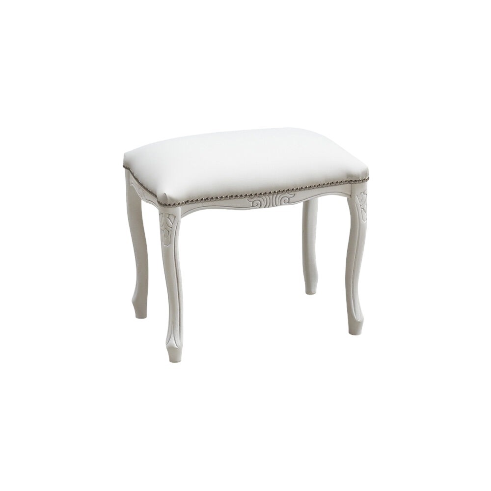 Pouff costruito in legno massello con gambe sagomate, rivestimento imbottito in ecopelle unico nel suo genere per la sua versatilità da posizionare in diverse stanze della casa. Ideale per la zona notte o come componente da salotto destinato alla seduta o ad appoggiare i piedi o le gambe .